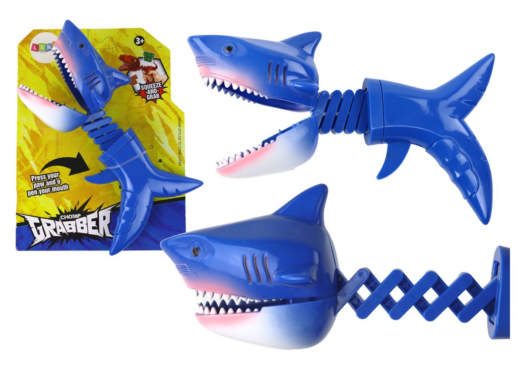 Představujeme vám jedinečnou hračku, kousací žraloka v intenzivní modré barvě, který vašemu dítěti přinese nezapomenutelné chvíle radosti a smíchu. Čím se náš žralok odlišuje od ostatních? Jeho interaktivní konstrukce je založena na pružině, díky které vzniká efekt kousavého sevření, který přináší nekonečnou zábavu.