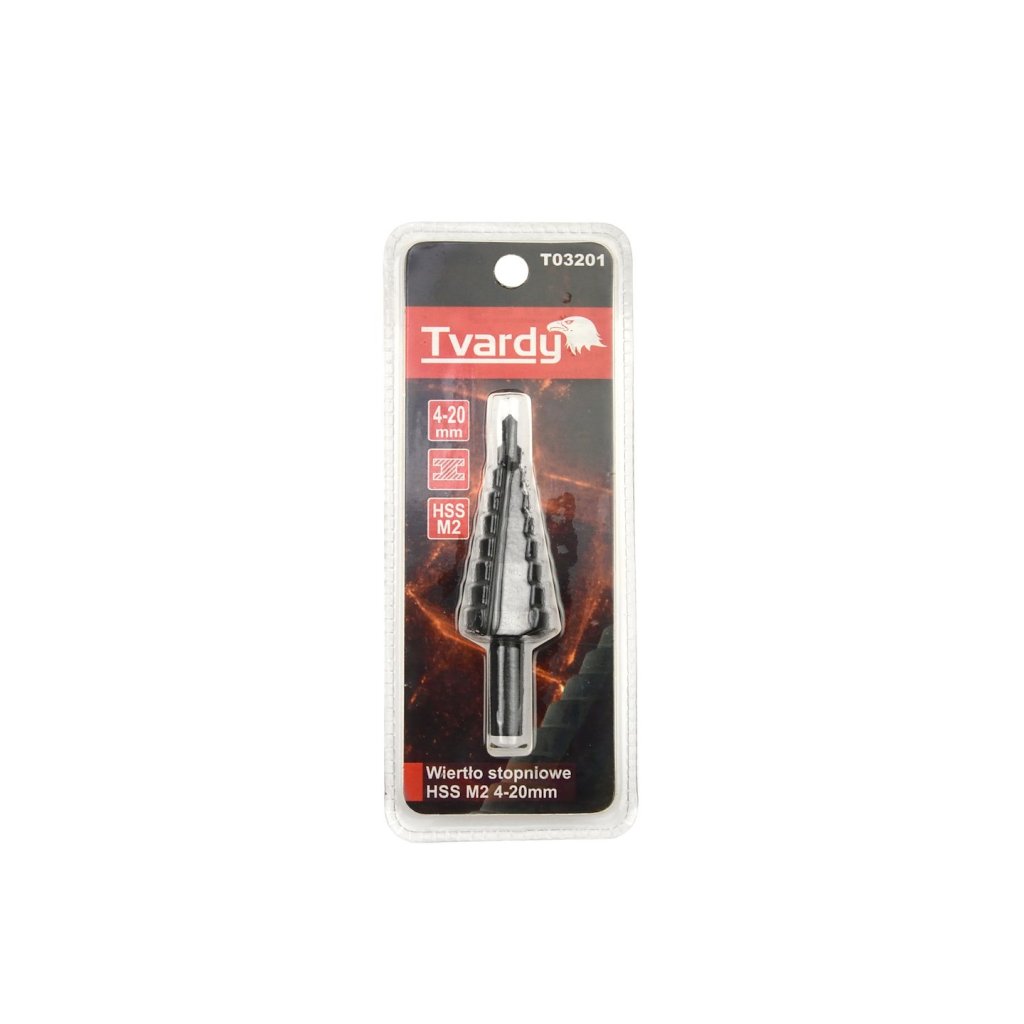 Stupňovévrtáky 4-20 mm profesionální značky Tvardyjsou vyrobeny z nejkvalitnější rychlořezné oceli HSS M2 s povlakem TiAlN. Vrtáky jsou odstupňovány po 2 mm, mají válcové držadlo a čitelné číslování. Jsou určeny pro kovy, tenkostěnné ocelové plechy a plasty.