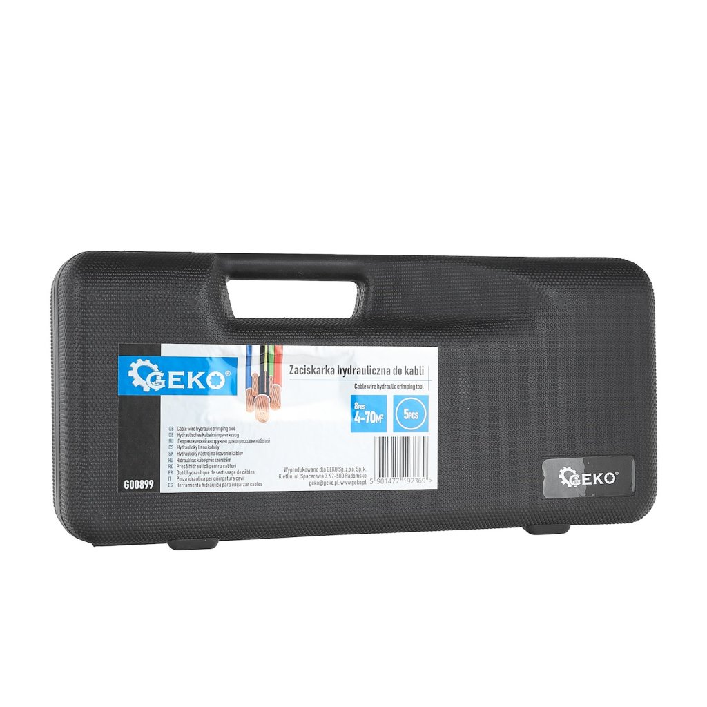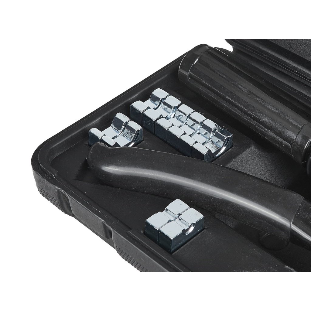 - Vyměnitelné matrice: 14 kusů, přizpůsobené různým průřezům vodičů (4, 6, 10, 16, 25, 35, 50, 70 mm2).