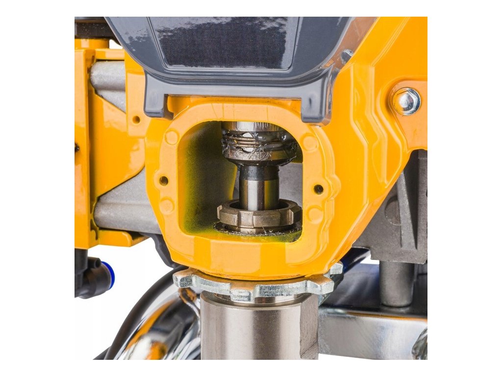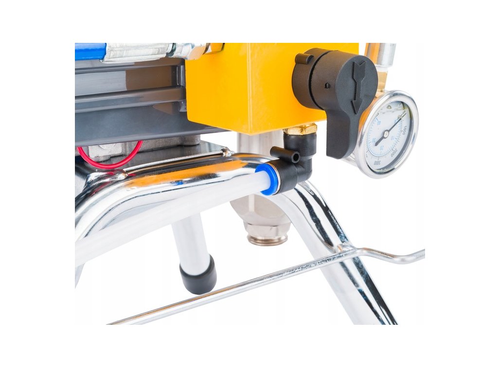 Výkonný bezvzduchový (airless) stříkací systém s bezkartáčovým motorem 1300 W pro rychlé a rovnoměrné nanášení interiérových nátěrů a vybraných fasádních nátěrů. Max. pracovní tlak 230 bar, průtok 3 l/min a hadice 15 m zajišťují vysoký výkon i dosah bez častého přesouvání jednotky. LCD displej usnadňuje nastavení a kontrolu. Čerpací část tvoří membránové čerpadlo poháněné pístem pro spolehlivý chod a snadnou údržbu.