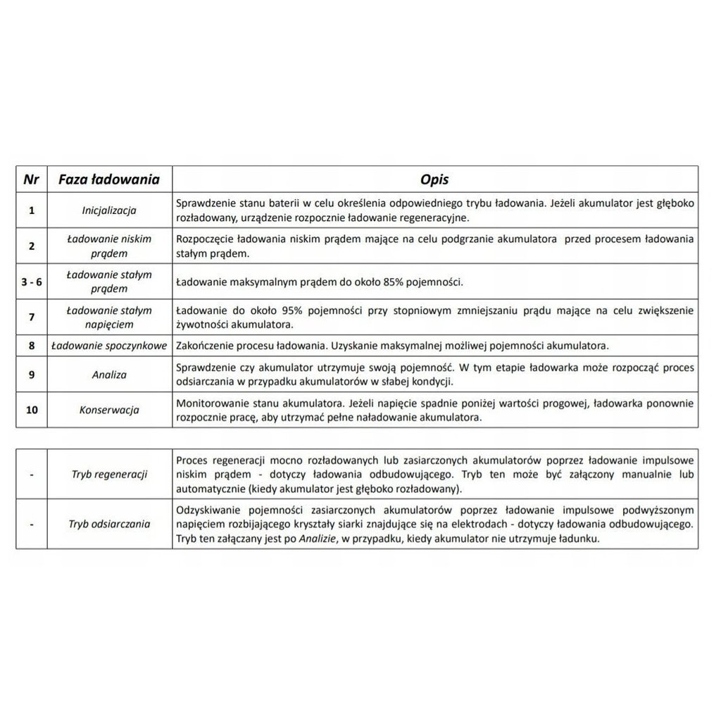 - Zabezpečení proti přepětí: 16VDC (12V režim), 32V (24V režim). Nadměrná teplota ochraňuje nabíječku vypnutím při 140°C.