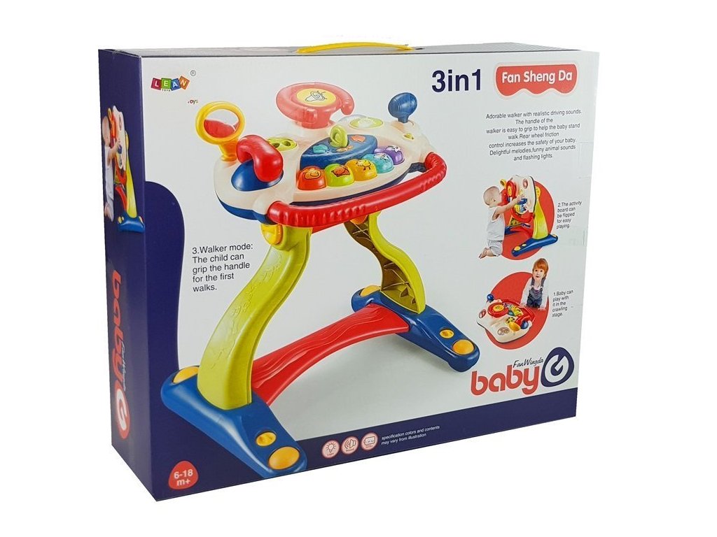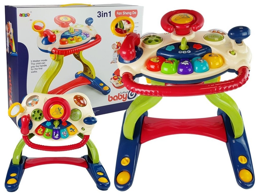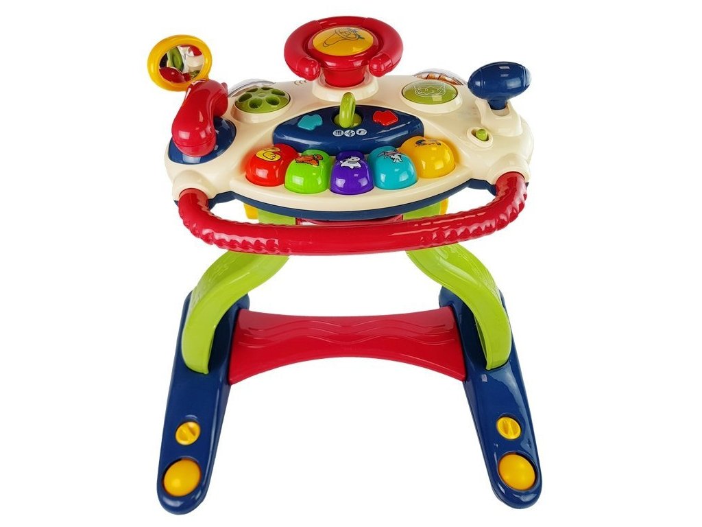 Tato interaktivní chodítko se stolečkem a volantem 3 v 1 je ideální hračkou pro první měsíce života vašeho dítěte. Kombinace chodítka s volantem, vybaveným barevnými tlačítky, poskytne dítěti nejen skvělou zábavu, ale také podpoří jeho rozvoj v prvních měsících. Když se dítě dotkne vybraného prvku, objeví se světla a zvuky, což zábavu ještě vylepšuje. Dítě se tak seznamuje s okolním světem, rozvíjejíc svou motoriku, manuální dovednosti, sluch a schopnost rozpoznávat tvary a barvy. Chodítko také obrovsky pomůže při prvních krůčcích vašeho dítěte.