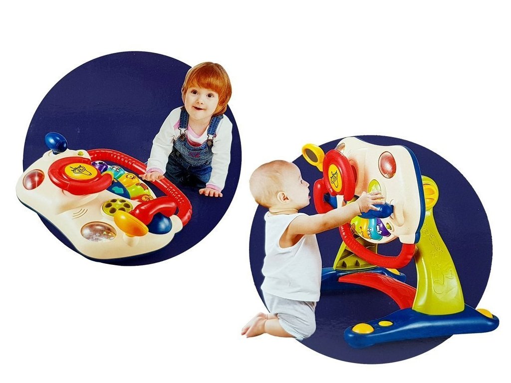 Tato hudební hračka se skládá z otočného volantu ergonomického tvaru, dokonale padnoucího do malých dětských rukou, dále hudebních tlačítek a otočného zrcátka. Dítě zde nalezne také klíček a tlačítka, která spouštějí zvuk motoru. Edukační panel má certifikát CE, který zaručuje splnění všech potřebných požadavků. Aby dítě mohlo využívat všechny funkce hračky, je třeba ji napájet 3 kusy baterií AA 1.5 V. Hračka je určena pro děti ve věku od 6 do 18 měsíců.