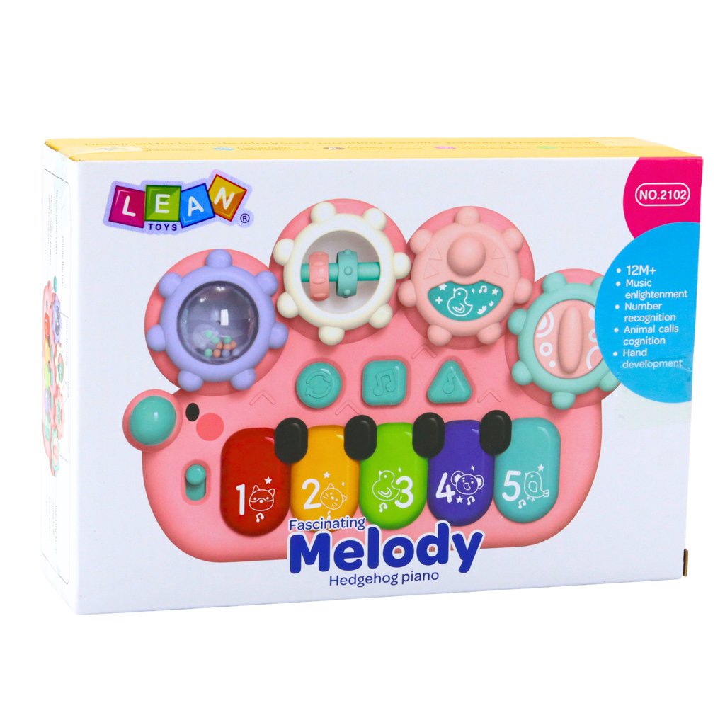 Toto pianinko v pastelové růžové barvě spojuje hudební funkce s mechanickými prvky, jako jsou rotující ozubená kola, díky kterým si dítě hrají a učí se zároveň barvy, zvuky a základní jemné motorické pohyby Hra obsahuje: