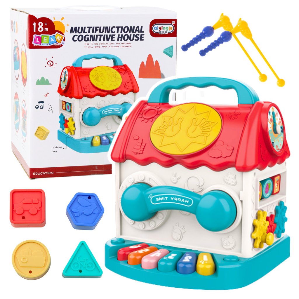Interaktivní edukační domek ve tvaru roztomilého domečku je výjimečná vzdělávací hračka navržená pro děti od 18 měsíců.