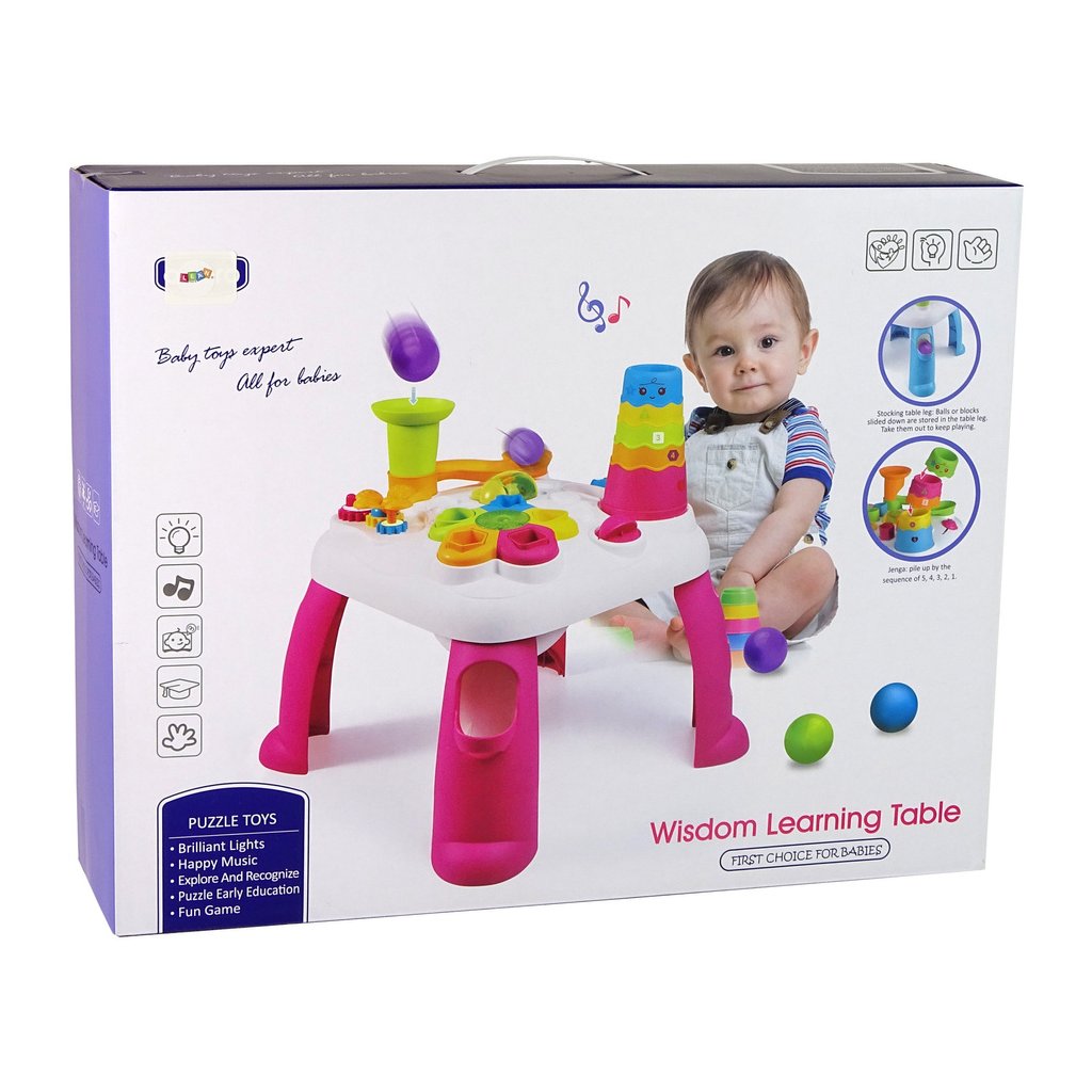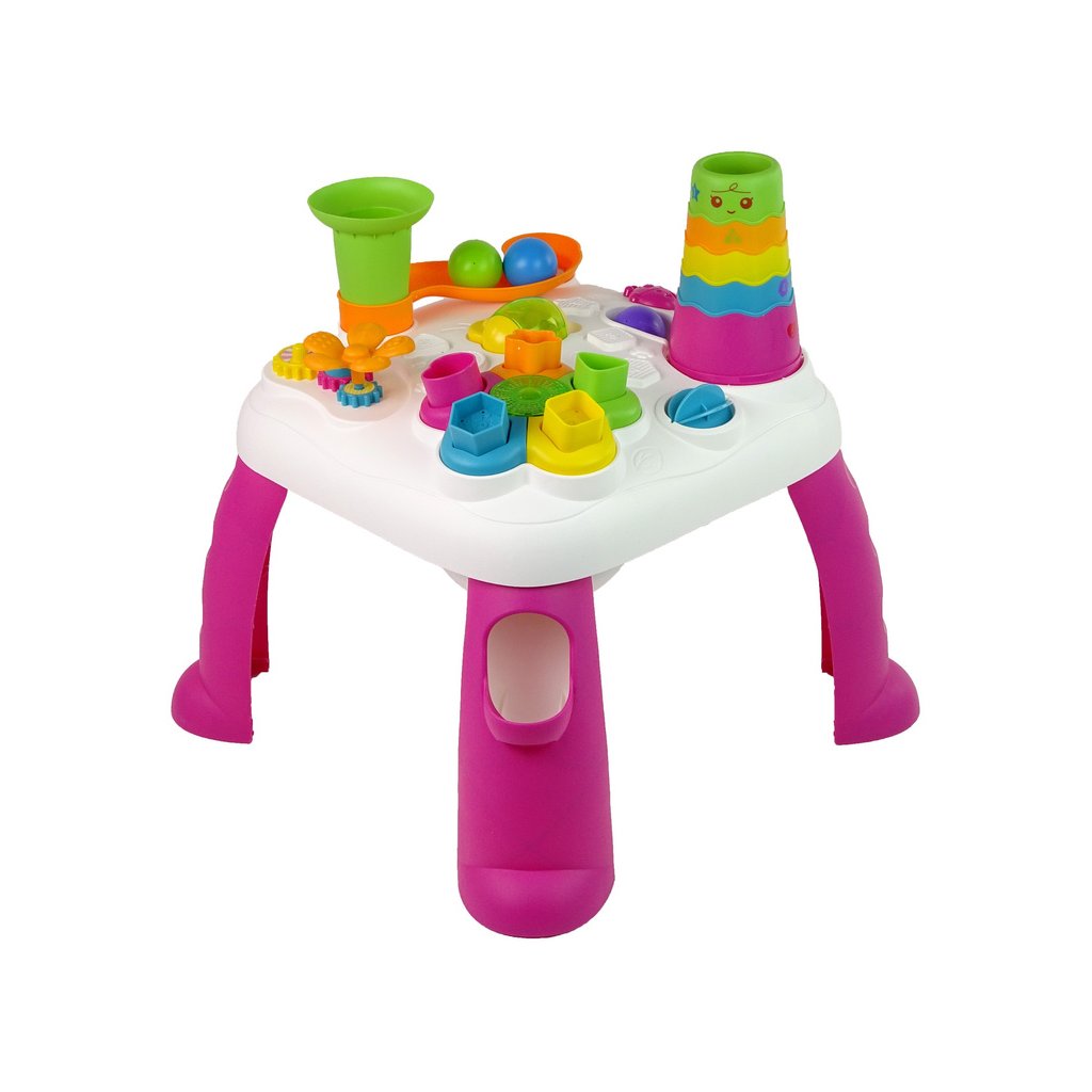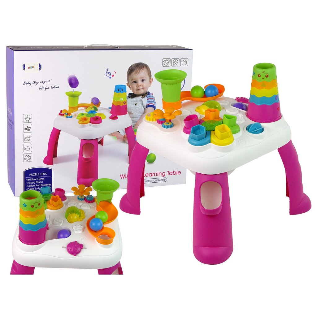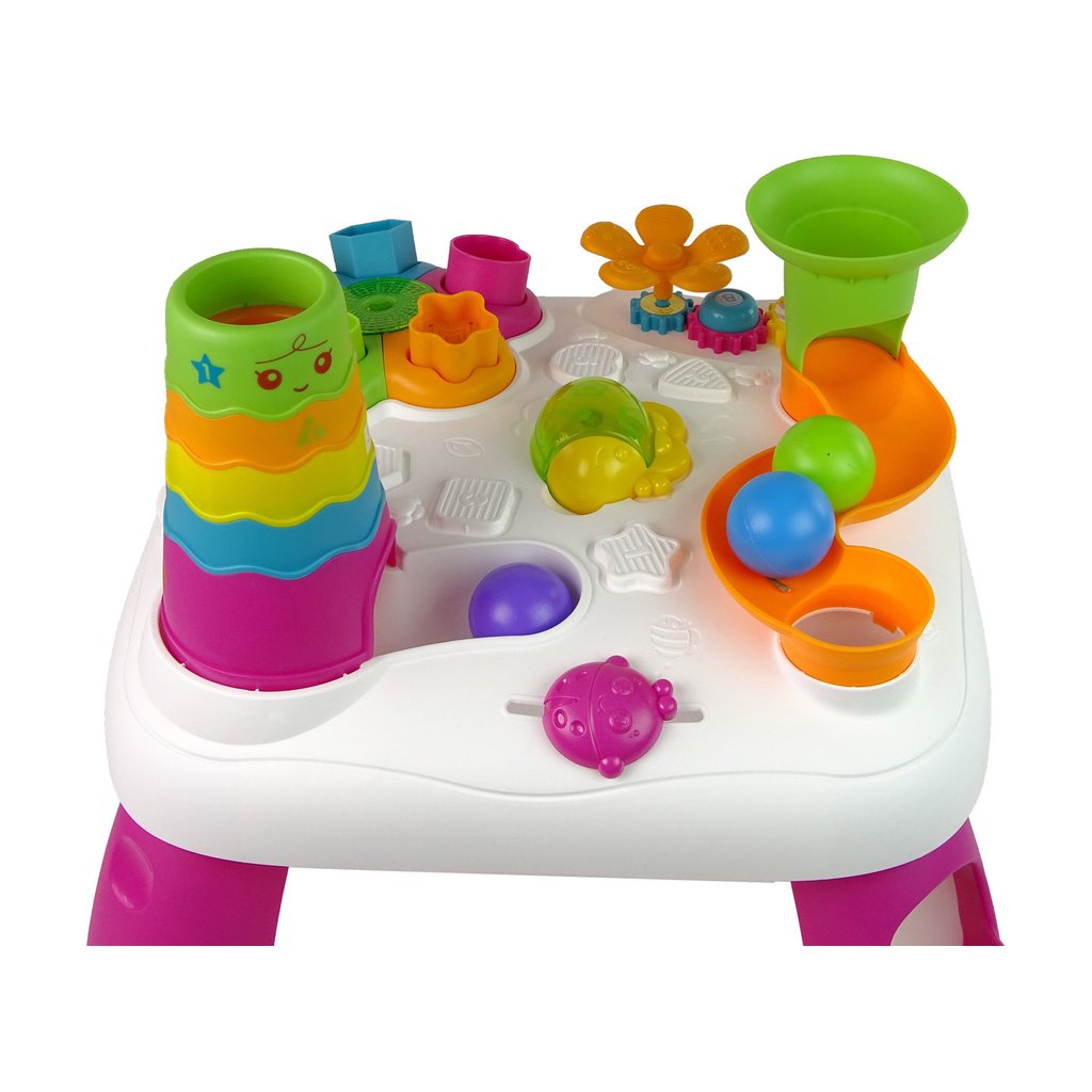Interaktivní vzdělávací stolek s třídičem a skluzavkou pro míčky, růžový Interaktivní stůl je hračka, kterou by měl mít každý malý dítě.