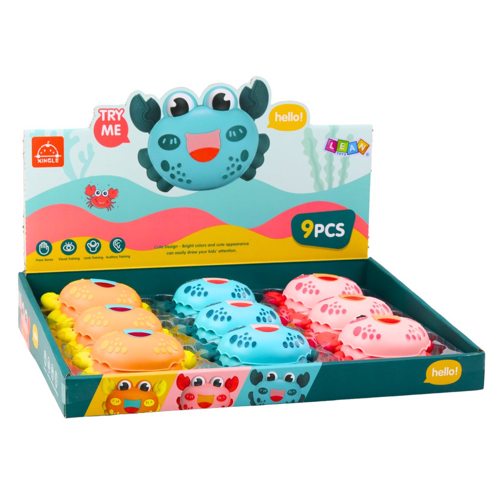 Hračka má délku 11 cm a je vyrobena z bezpečného plastu Po stlačení horní části krunýře se krab začne pohybovat vpřed, což přináší dětem mnoho radosti a povzbuzuje je k aktivní zábavě