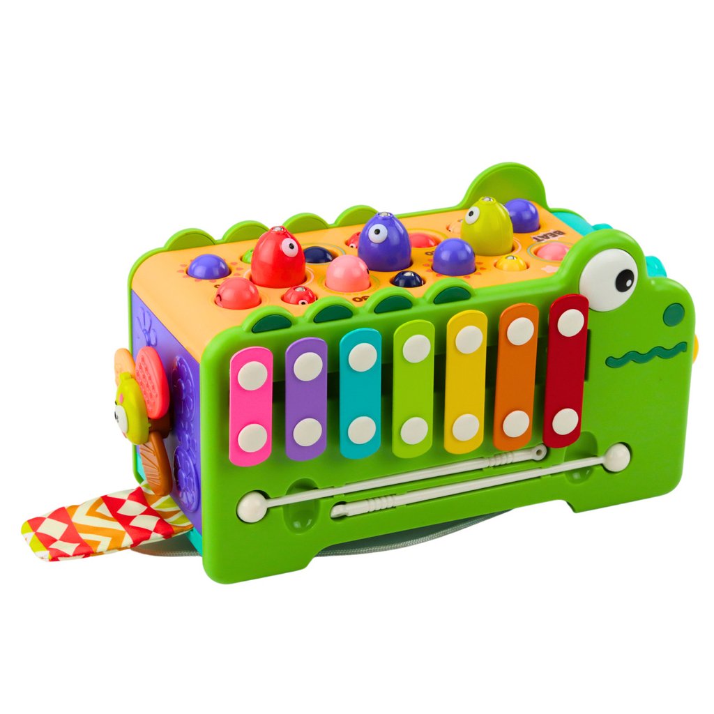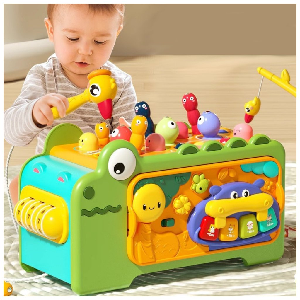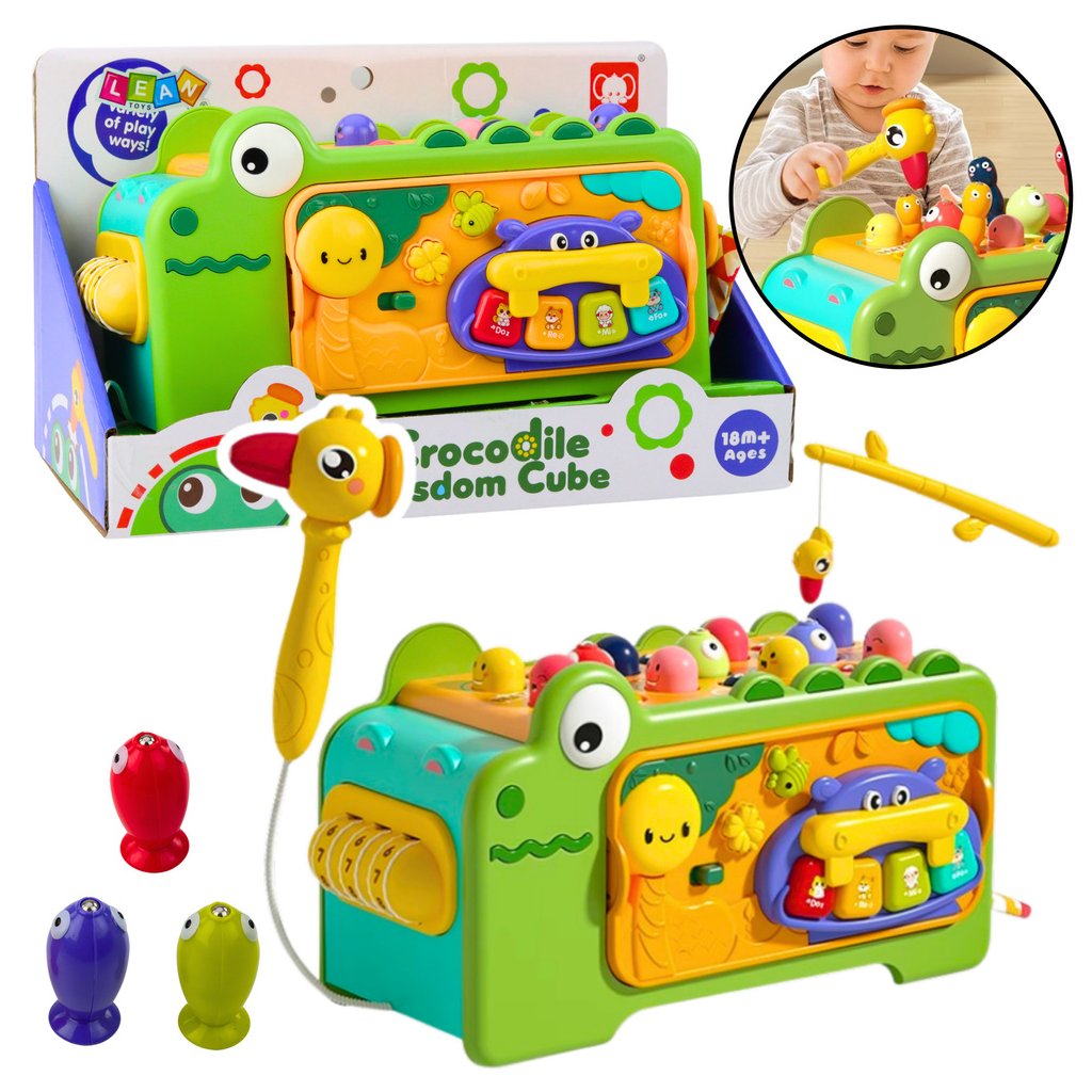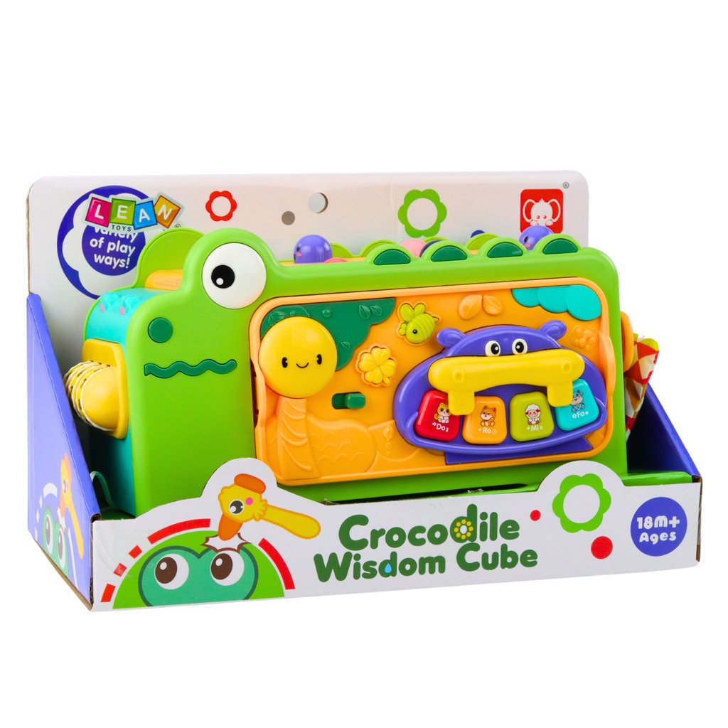 Interaktivní Krokodýlí Vzdělávací Multifunkční Kostka Se Zvuky je multifunkční vzdělávací hračka navržená s ohledem na nejmladší děti, v souladu s principy metody Montessori Spojuje řadu vzdělávacích aktivit, které podporují motorický, kognitivní a kreativní rozvoj dítěte již od 18 měsíců věku