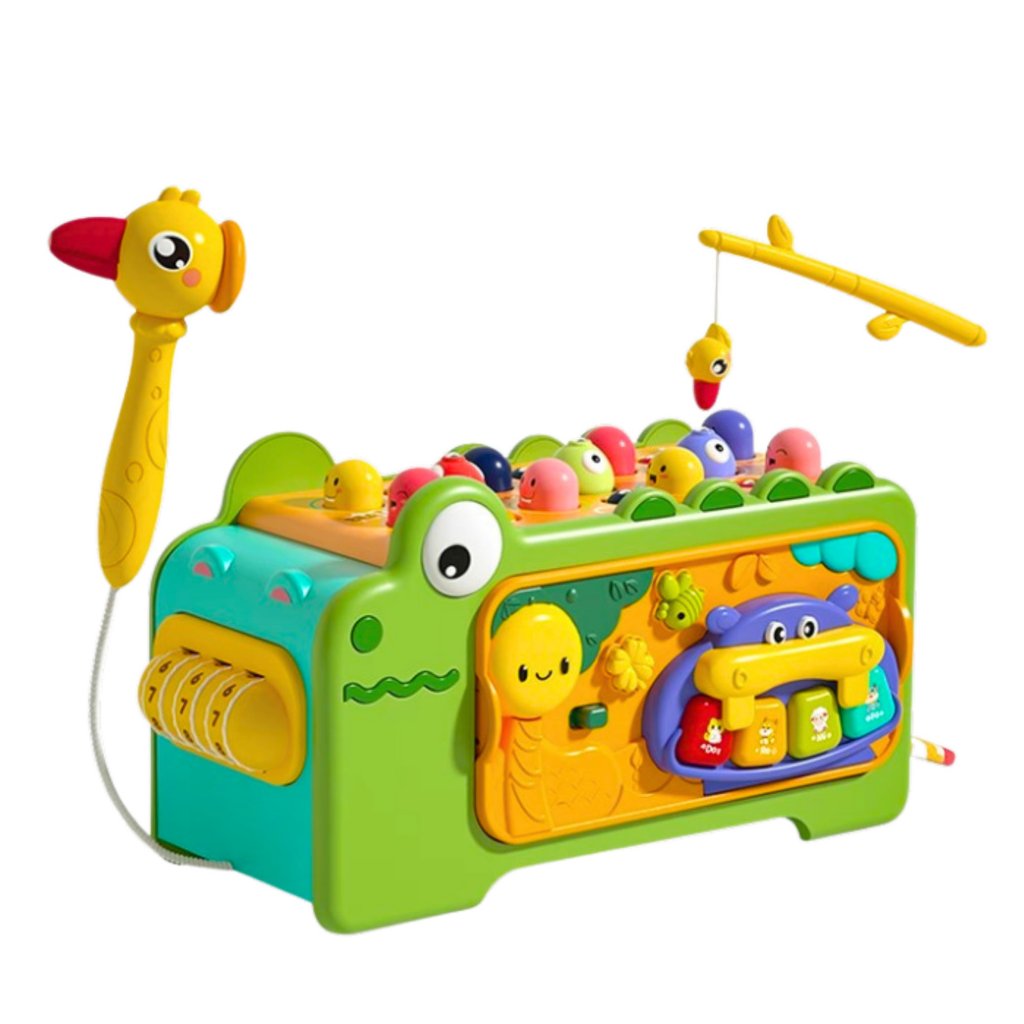 Interaktivní Krokodýlí Vzdělávací Multifunkční Kostka Se Zvuky je multifunkční vzdělávací hračka navržená s ohledem na nejmladší děti, v souladu s principy metody Montessori.