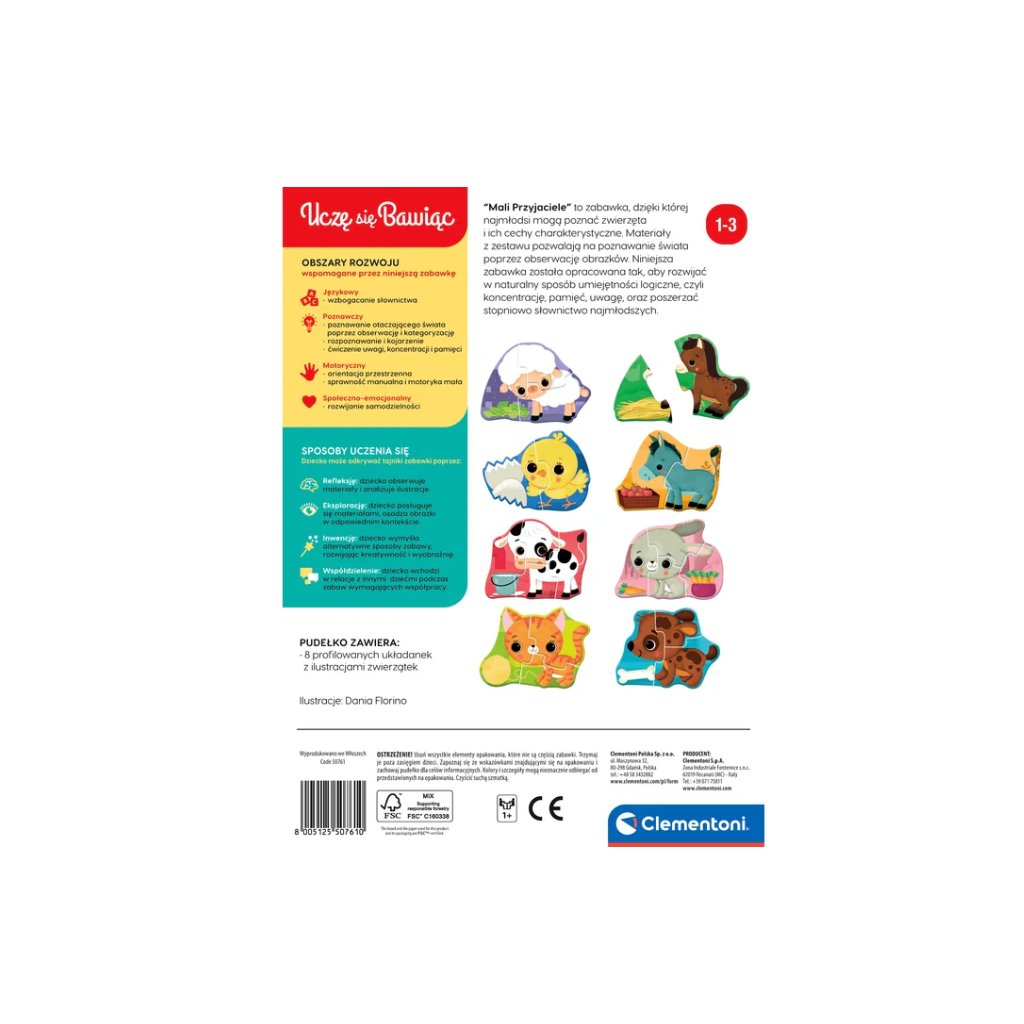 Objevte kouzelný svět s hračkou Mali přátelé, navrženou tak, aby Vašim dětem poskytla nezapomenutelný zážitek z poznávání zvířat a jejich charakteristik. Tato hračka byla vytvořena s ohledem na přirozený rozvoj logických schopností, jako je koncentrace, paměť a pozornost. Navíc pomáhá postupně rozšiřovat slovní zásobu Vašich nejmenších.