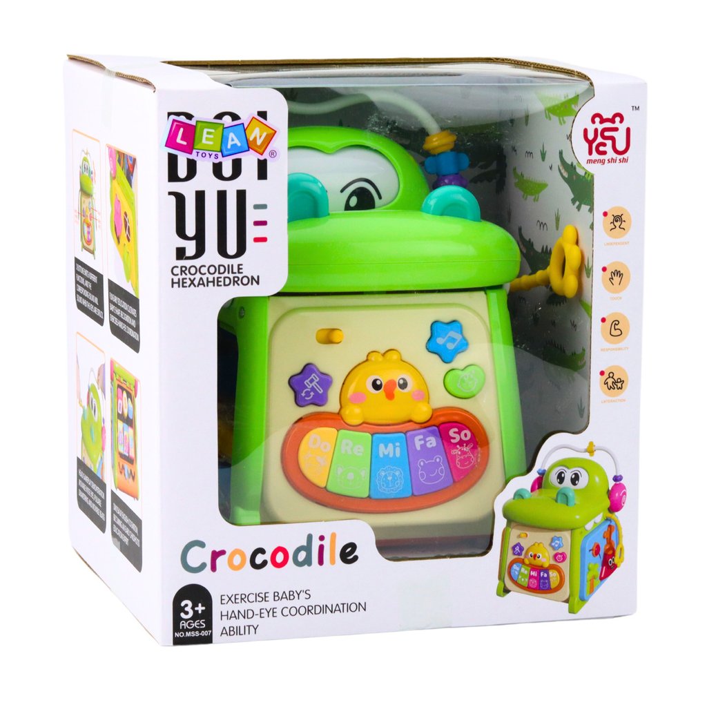 Kostka vzdělávací Krokodýl je multifunkční interaktivní vzdělávací kostka, která je propracovanou senzomotorickou hračkou.