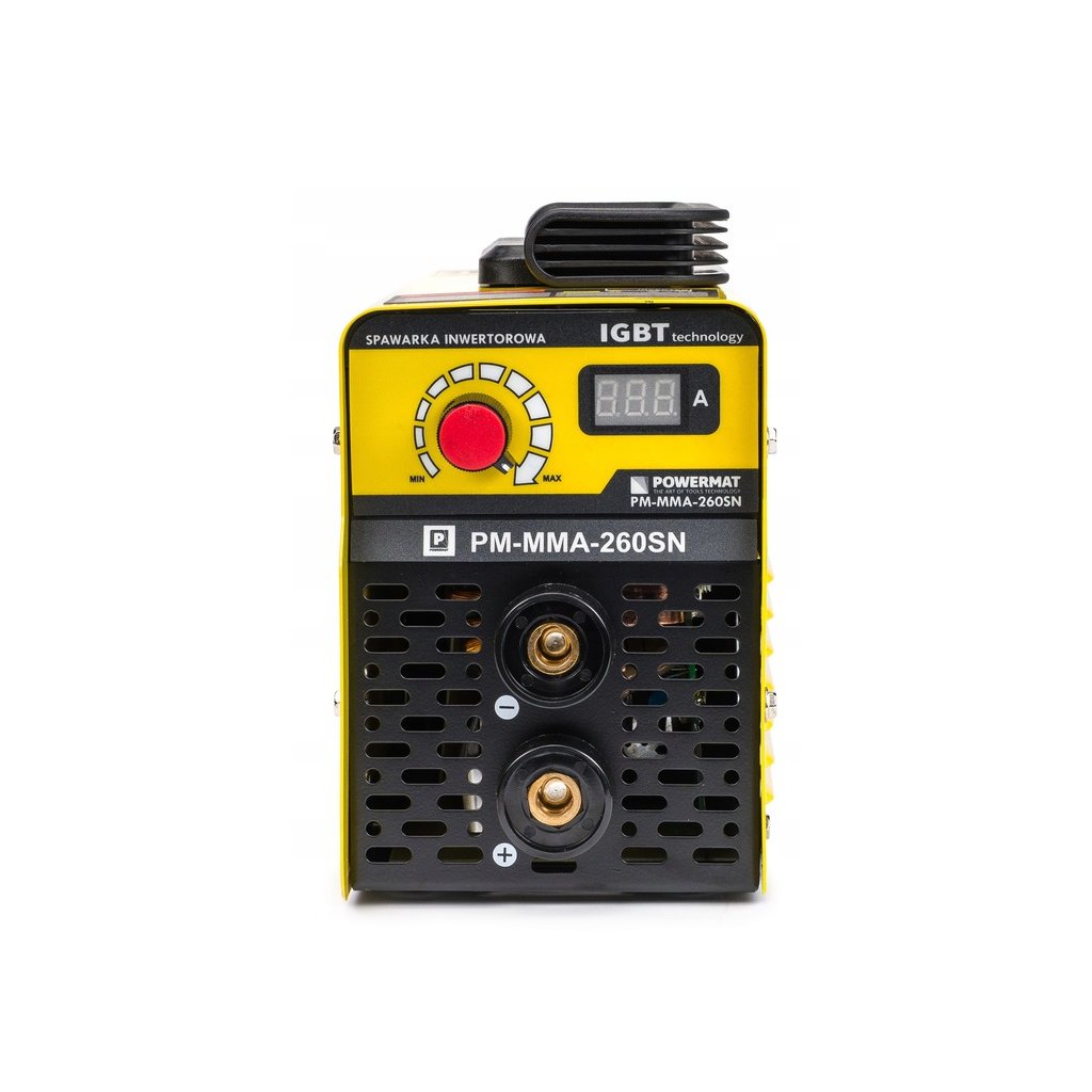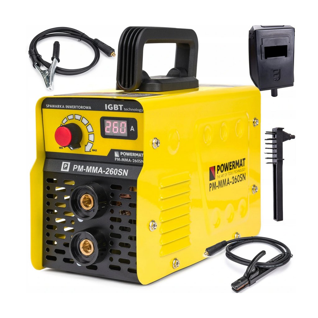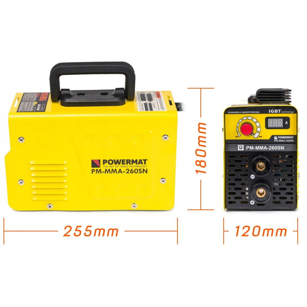 Model PM-MMA-260SN je invertorová svářečka, jejíž konstrukce je založena na účinných IGBT tranzistorech. Je vybaven LCD displejem zobrazujícím aktuální svařovací proud, nastaveným knoflíkem s plynulým nastavením.