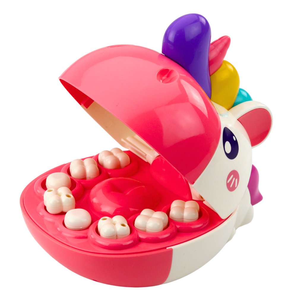 Jednorožec Dentista Edukační Sada Lékař Stomatolog Růžový přináší zábavu a vzdělání v jednom! Tato unikátní herní sada s roztomilým růžovým jednorožcem je klíčem k rozvoji dětských manuálních dovedností a koordinaci ruka-oko. Díky realistickým stomatologickým doplňkům, jako jsou zubní kartáček nebo vrtačka, si děti mohou hrát na zubaře a posilovat své hygienické návyky. Pozornost si zaslouží i světelné a zvukové efekty, které hru činí fascinující a pohlcující.