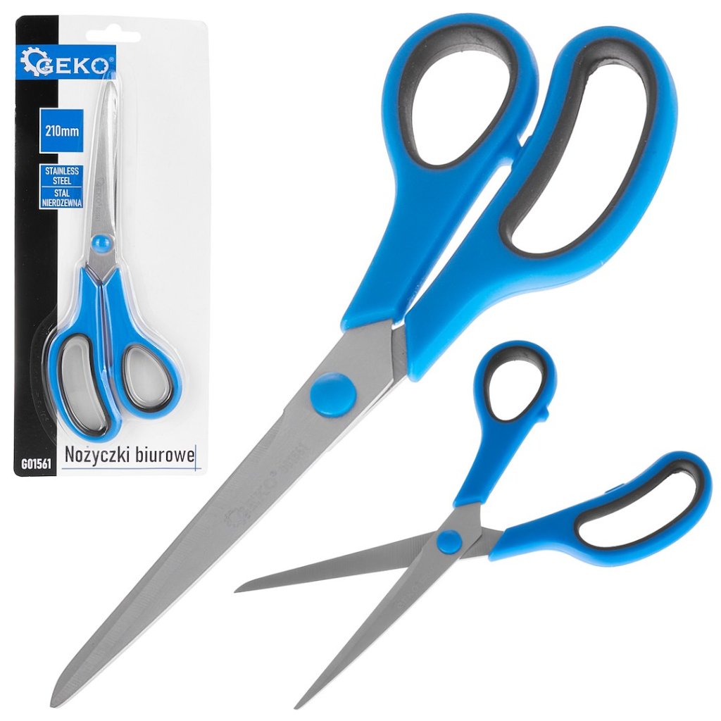 Kancelářské nůžky vyrobené z nerezové oceli 2Cr13. Celková délka je 210 mm, tloušťka čepelí nůžek je 1,8 mm.