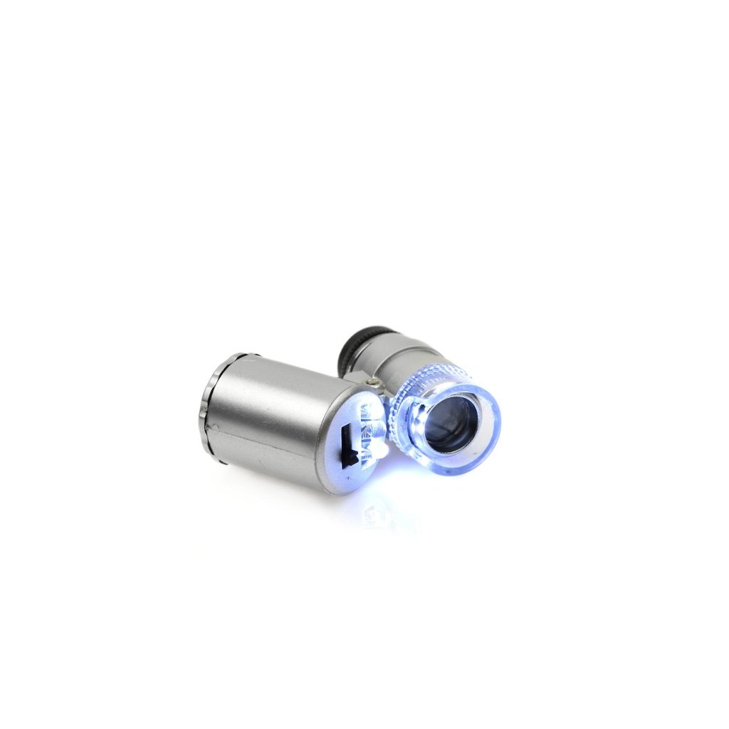 Kapesní mikroskop umožňující pozorování malých předmětů s 60násobným zvětšením. Vhodný pro klenotníky, hodináře, numismatiky, elektroniky atd. Vybaven 3 osvětlovacími diodami, dvě emitují bílé světlo, třetí dioda je UV dioda.