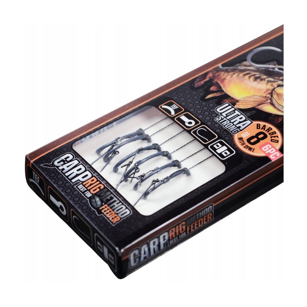 Profesionální připony navržené pro method feeder. Precizně ostřený háček č. 8, pevná pletenka a integrovaná jehla na nástrahu (10 cm) zajišťují maximální efektivitu a spolehlivé záběry.