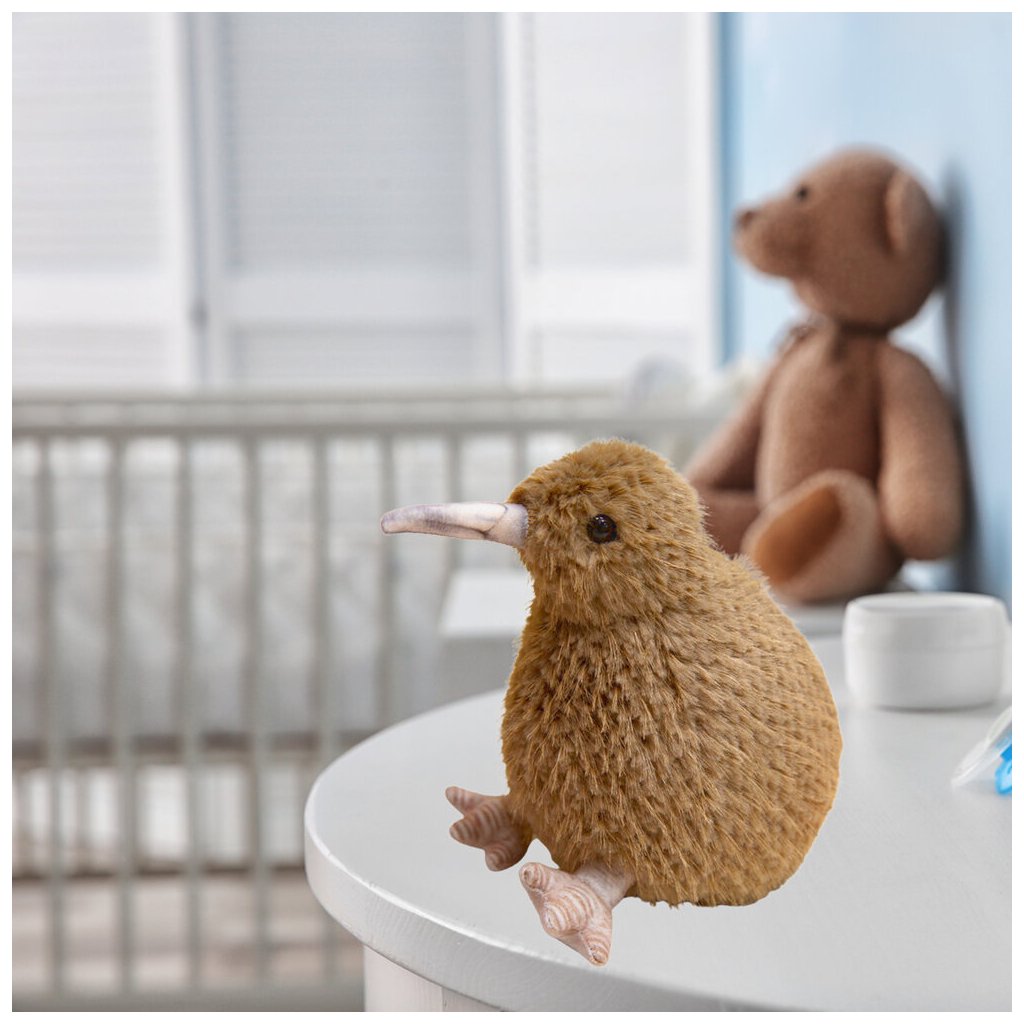 - Plyšová hračka znázorňující ptáka kiwi ve výšce 21 cm, věrně odrážející charakteristické světlehnědé opeření tohoto unikátního ptáka