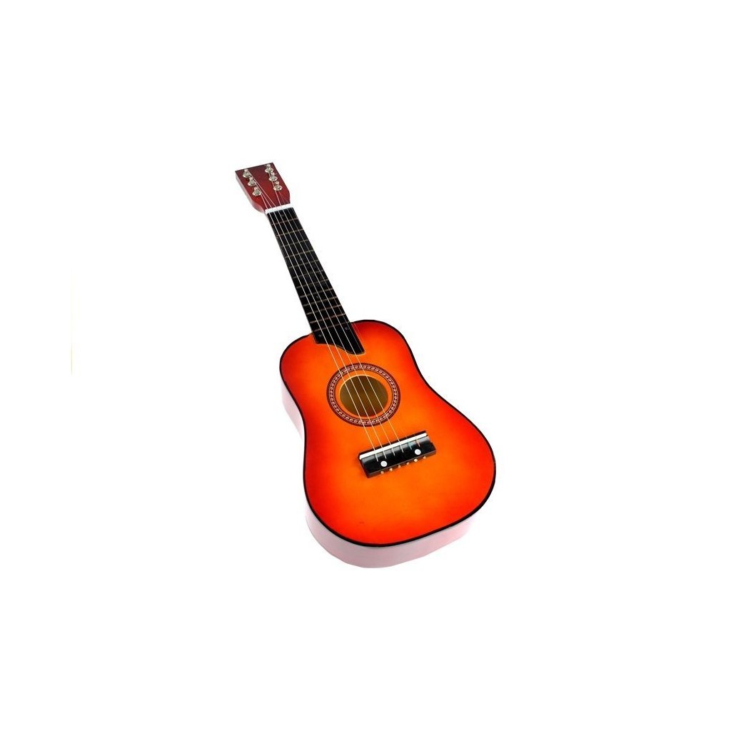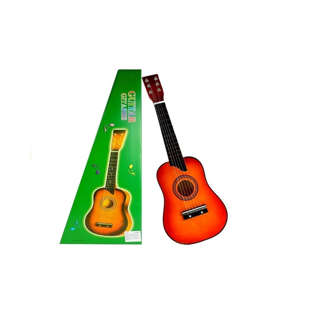 Dřevěná kytara 60 cm v červené barvě. Tato úžasná kytara je skutečným hudebním nástrojem pro vaše dítě. Od skutečné kytary se liší velikostí, která je zde přizpůsobena potřebám malého dítěte. Pečlivé zpracování z lakovaného dřeva a možnost ladění šestistrunné kytary pomocí speciálních strun umožňuje vydávat realistické zvuky a vytvářet krásnou hudbu. Váš mladý muzikant bude touto kytarou nadšený.