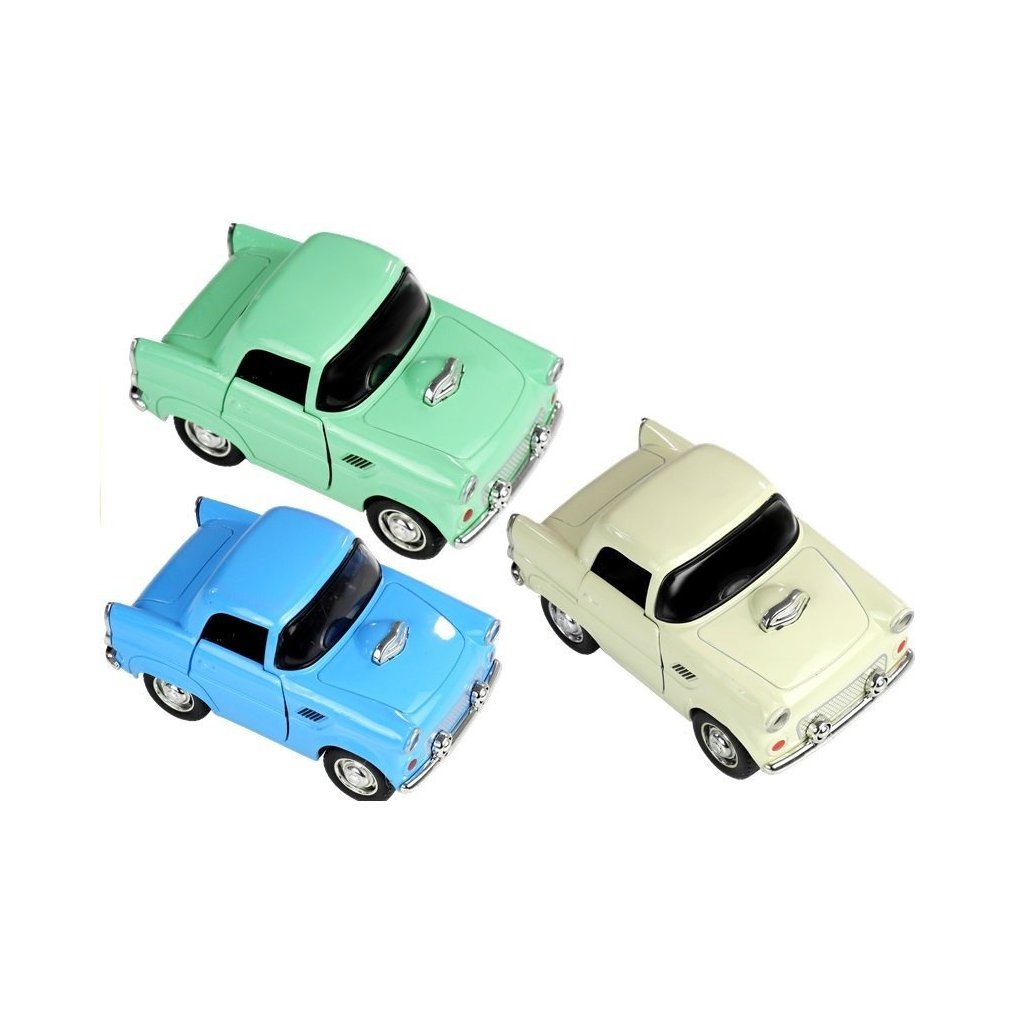Klasické autíčko z kovu se zvukem Mix Hračka v podobě historického klasického auta je jedinečným a nostalgickým doplňkem pro milovníky starých, klasických modelů vozidel Byla vytvořena s cílem potěšit jak nejmladší fanoušky motorismu, tak i ty, kteří ocení estetiku a charakter klasických automobilů