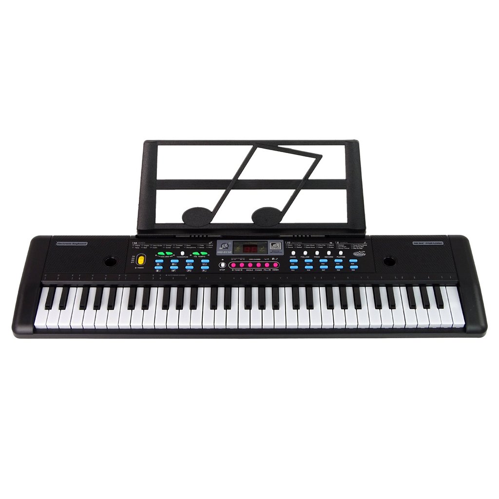 Tento keyboard nabízí 61 kláves, což umožňuje snadné a přirozené hraní. Vestavěný mikrofon dovoluje zpěv oblíbených písní, což určitě zaujme děti, které chtějí experimentovat s vokály. Klávesy jsou snadno ovladatelné a měkké, lehce pracující, a nepropouštějí vibrace na zápěstí, zatímco ergonomický design zajišťuje velmi pohodlné používání.