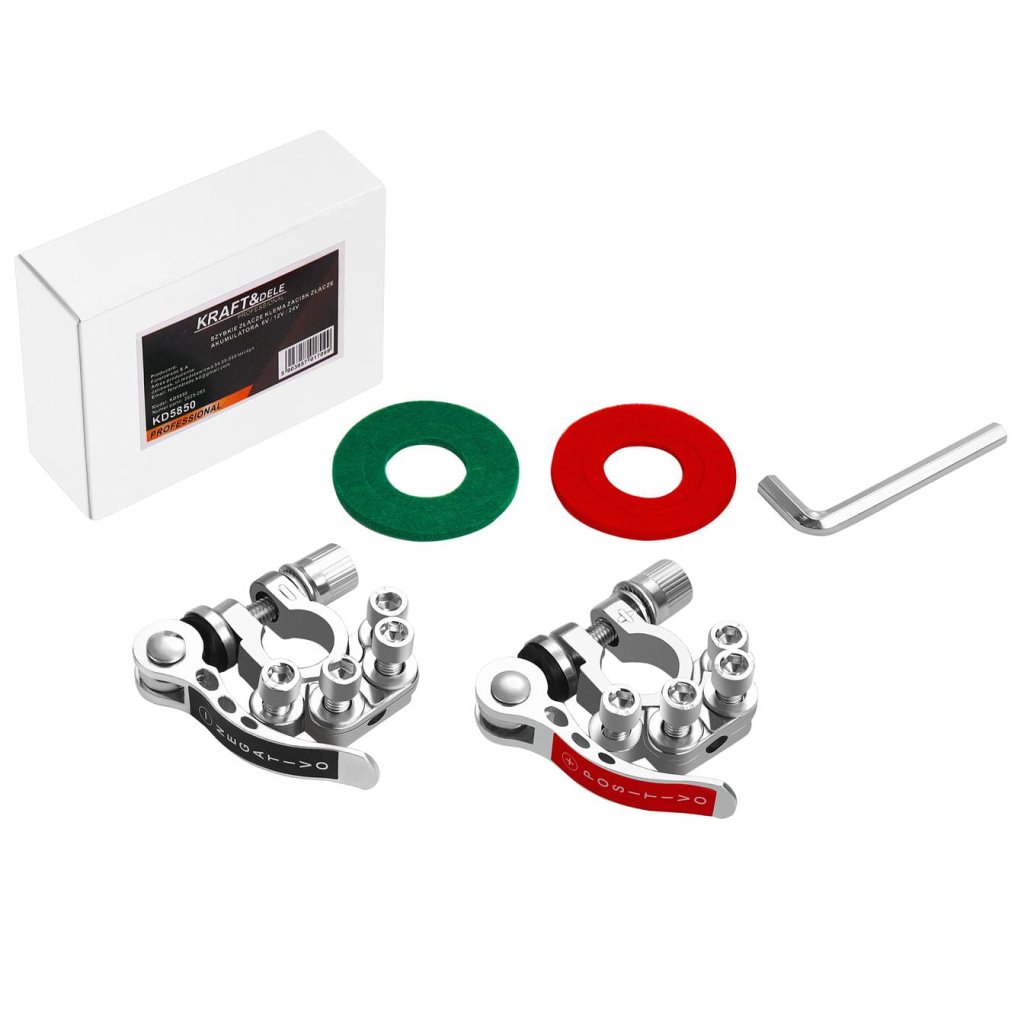 S těmito rychloupínacími bateriovými svorkami KD5850 od Kraft&Dele proměníš připojování baterií na snadnou záležitost! Montáž bez nářadí, prostě jen otoč rukojetí. Hodí se pro široké spektrum vozidel i strojů. Jasné označení polarity, splňují normy RoHS a EC. Ať už venku mrzne, nebo se paříš na sluníčku, teploty od -40°C do +90°C tě nezastaví. Balení obsahuje 2 kusy, abys byl vždy připraven!