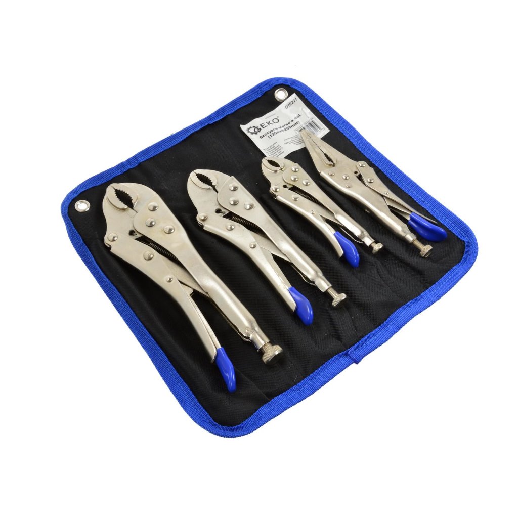 Sada kleští Morse 4 ks. Sada obsahuje kleště o velikostech 125–250 mm. Nastavovací šroub zajišťuje kontrolované uvolnění a dobré uchycení jednotlivých materiálů.