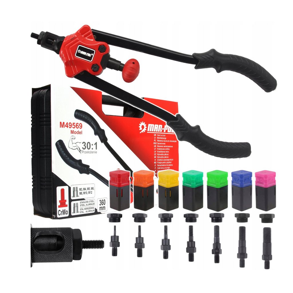 Kleště na nýtovací matice M3-M12 (M49569) jsou praktickým nástrojem pro rychlé a pevné nýtování závitových spojů v různých materiálech. 🔩