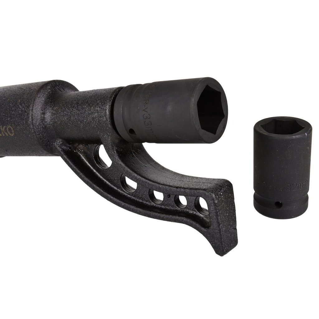 TECHNICKÉ ÚDAJE: - Maximální točivý moment 6000 Nm - Násadky 32 mm a 33 mm - Prodloužení a klika v sadě - Celek v plastovém kufříku