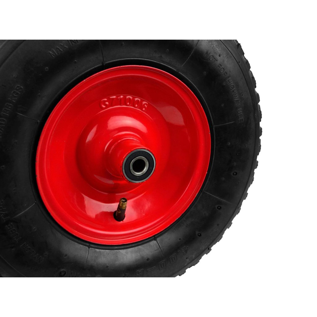 Kolo pro kolečko/vozík nafukovací 2PR s maximální nosností do 90 kg. Odolný kovový ráfek s práškovým lakováním zajišťuje zvýšenou stabilitu. Celek je vyroben z vysoce kvalitních materiálů.