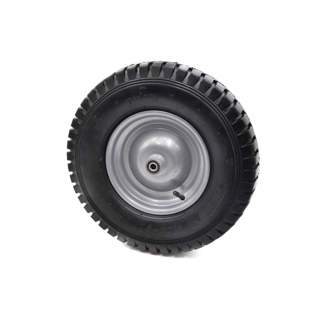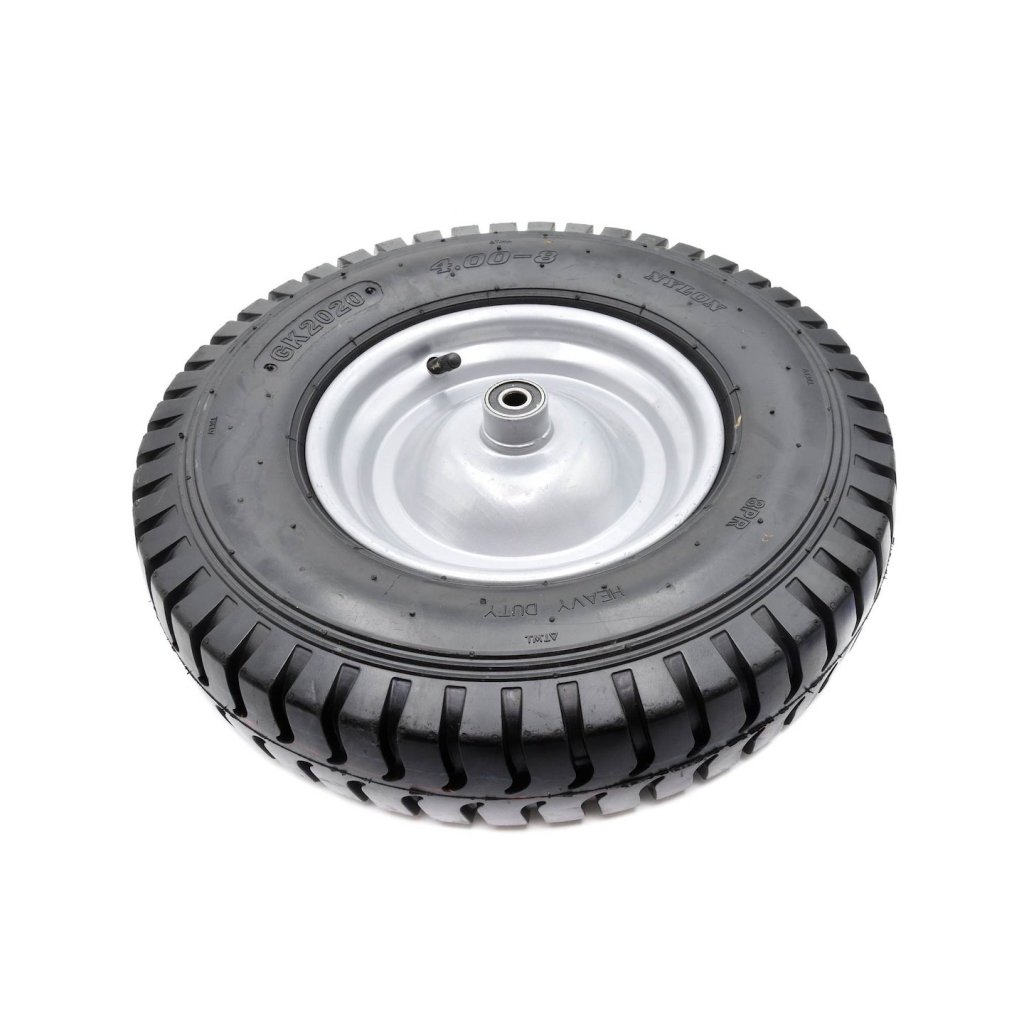Kolo 4.00-8 8PR Heavy Duty pro kolečko s maximální nosností do 180 kg. Odolný kovový ráfek s práškovým lakováním zajišťuje zvýšenou stabilitu. Celé kolo je vyrobeno z vysoce kvalitních materiálů. Součástí balení je 12mm osa.