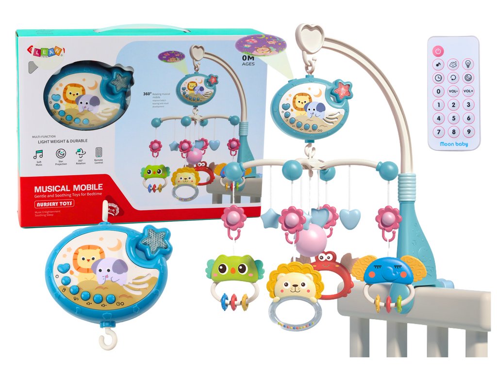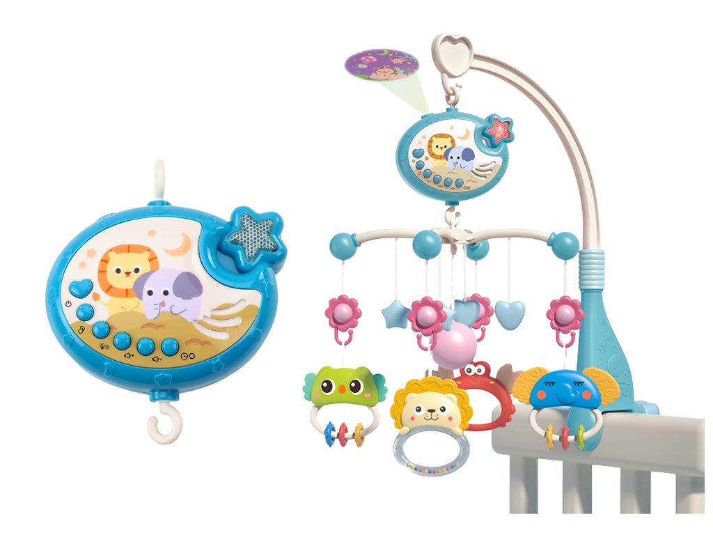 Představujeme vám kolotoč na postýlku s projektorem, který je dokonalým doplňkem do dětského pokoje Tento multifunkční přístroj kombinuje hrací skříňku, lampičku a projektor hvězd, aby vytvořil magickou atmosféru a pomohl uklidnit vaše děťátko před spaním