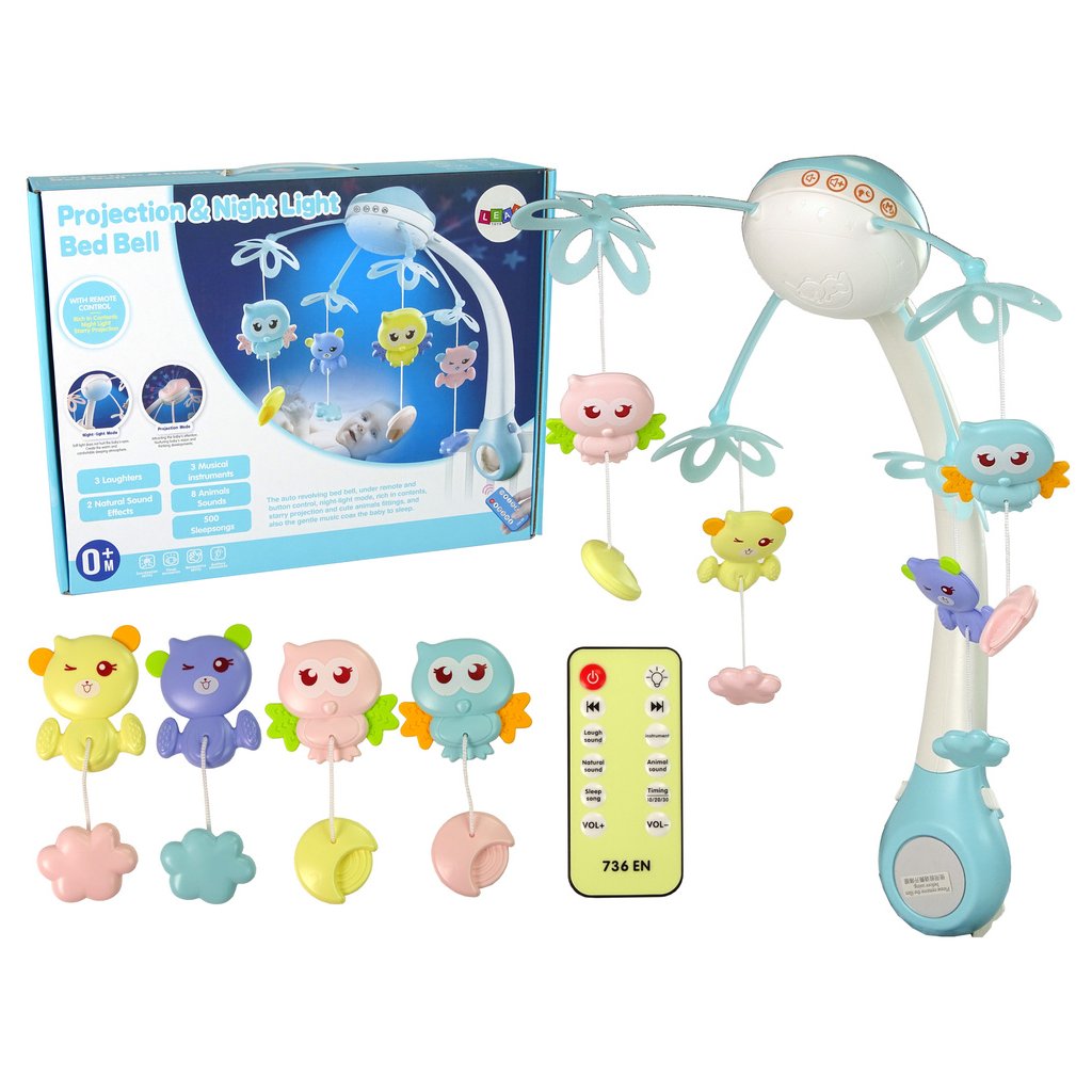 Kolotoč nad Postýlku Projektor Ovladač Melodie Zvířecí Zvuky Modrý