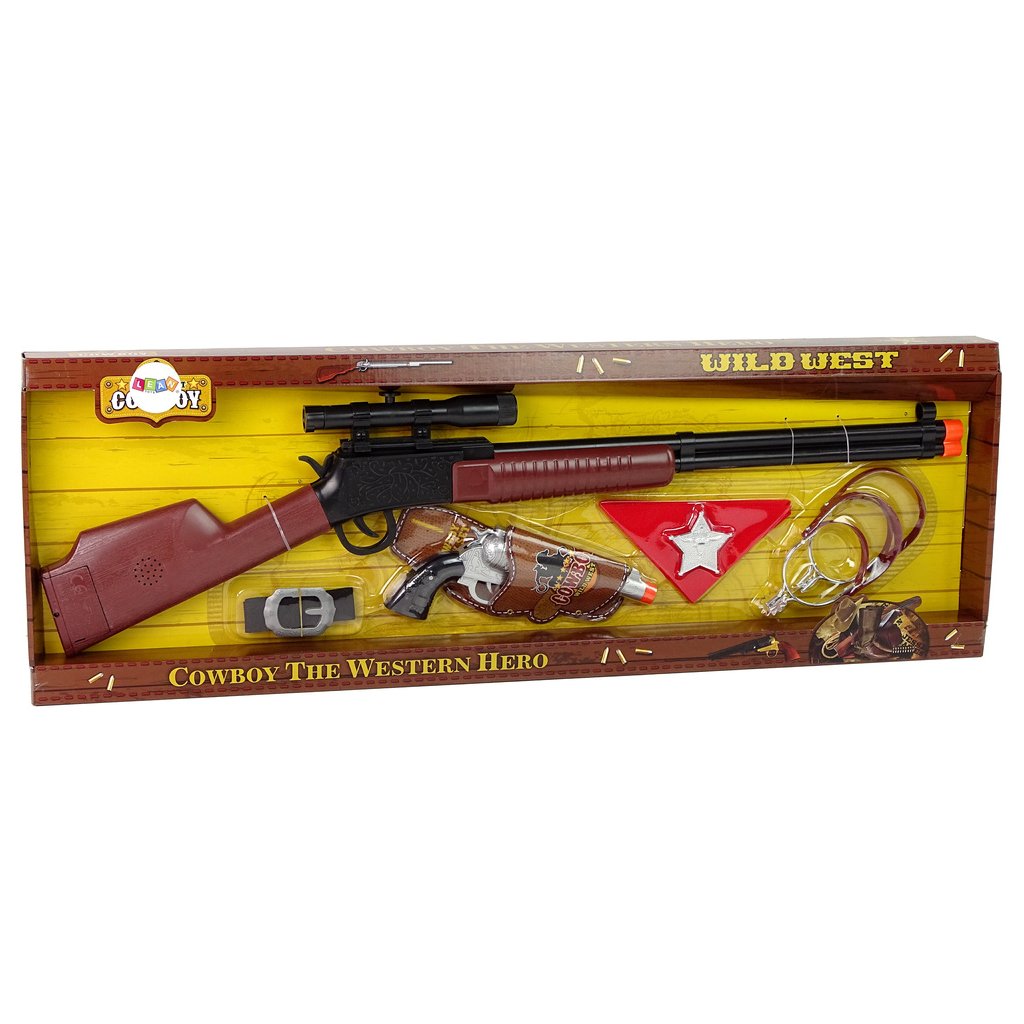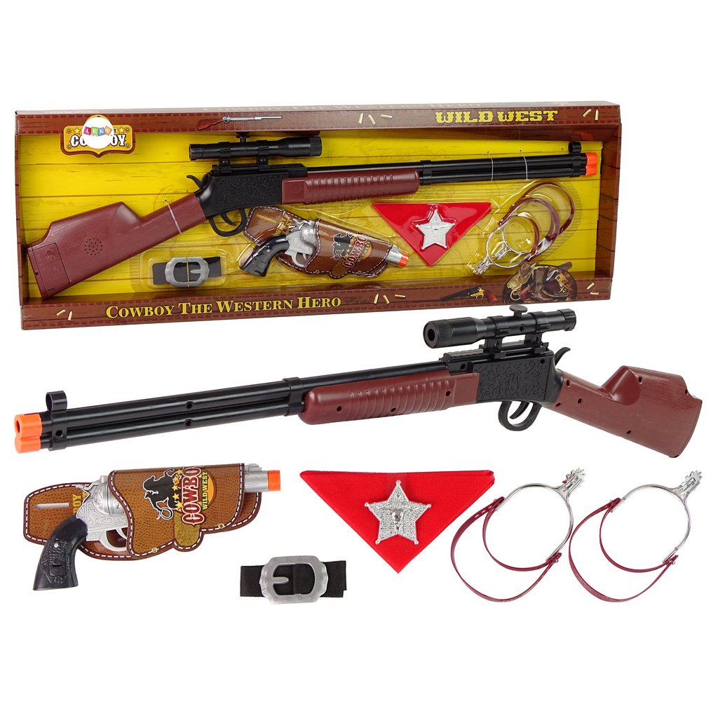 Kovbojský set šerifa s brokovnicí a revolverem Divoký západ u vás doma! Malý kovboj konečně bude mít své vlastní doplňky, které jsou ideální na hraní