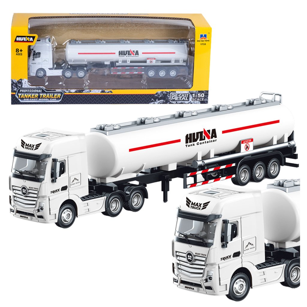Kovová Cisterna Nákladní Auto 1:50 Pohyblivé Prvky Bílá je pečlivě zpracovaný model nákladního vozu s návěsem - cisternou v měřítku 1:50.