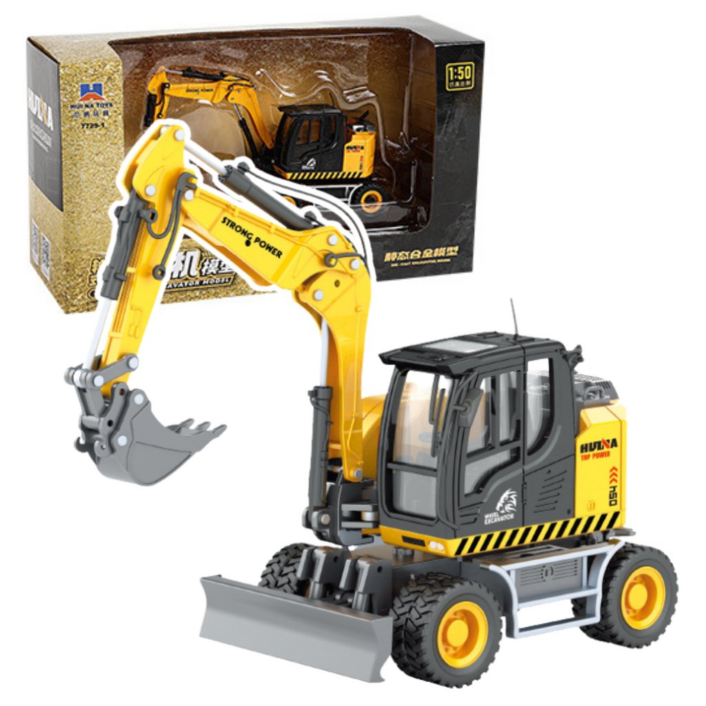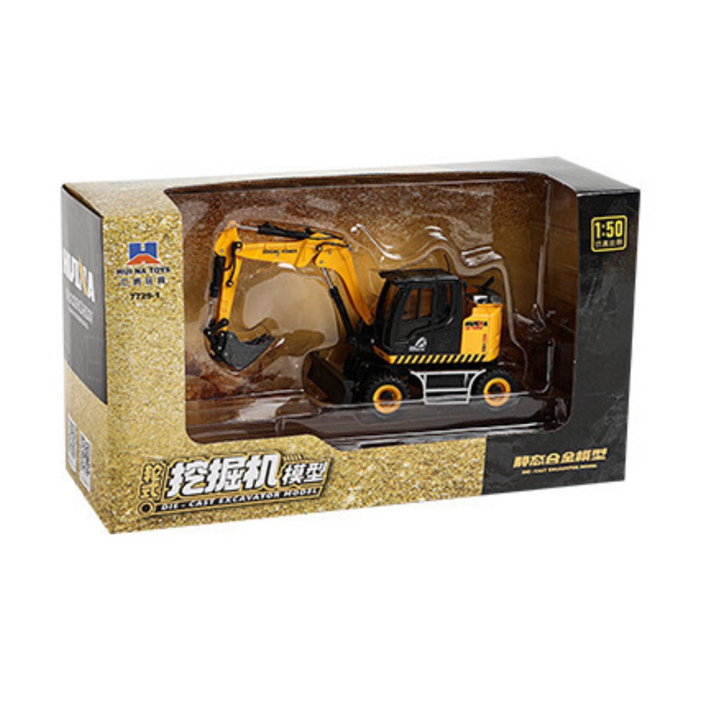Kovový Kolový Bagr Se Strojním Nakladačem Huina Žlutý 1:50