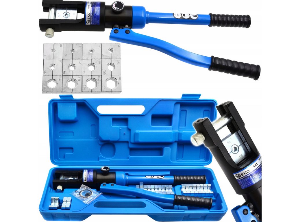 ✅ Hydraulický mechanismus: Tyto kleště využívají hydraulický systém, který poskytuje silný tlak až 18 tun, což zajišťuje snadné a efektivní krimpování kabelů.