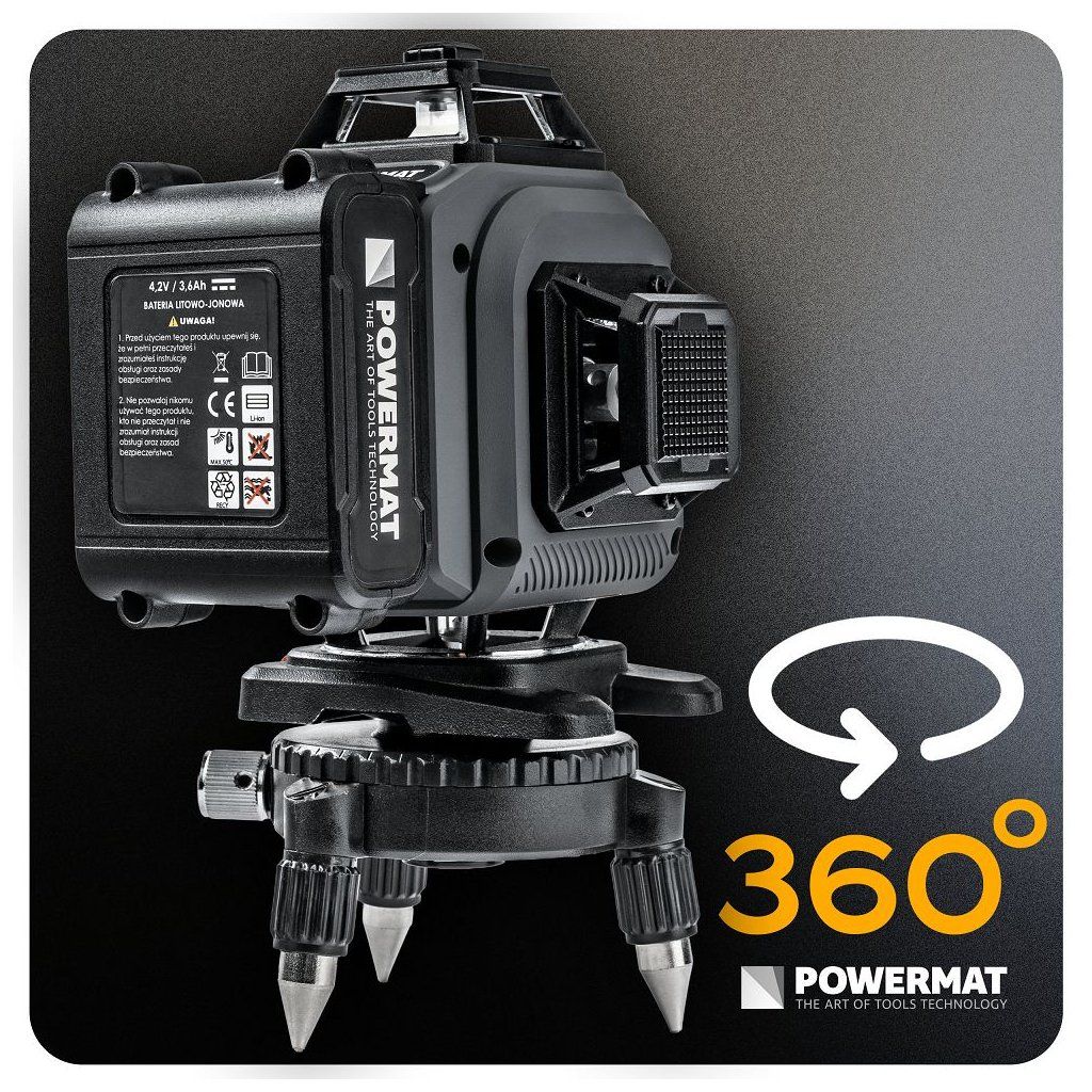 Křížový laser 4D 360° (16 linií) POWERMAT PM-PLK-4DM3 – zelený paprsek