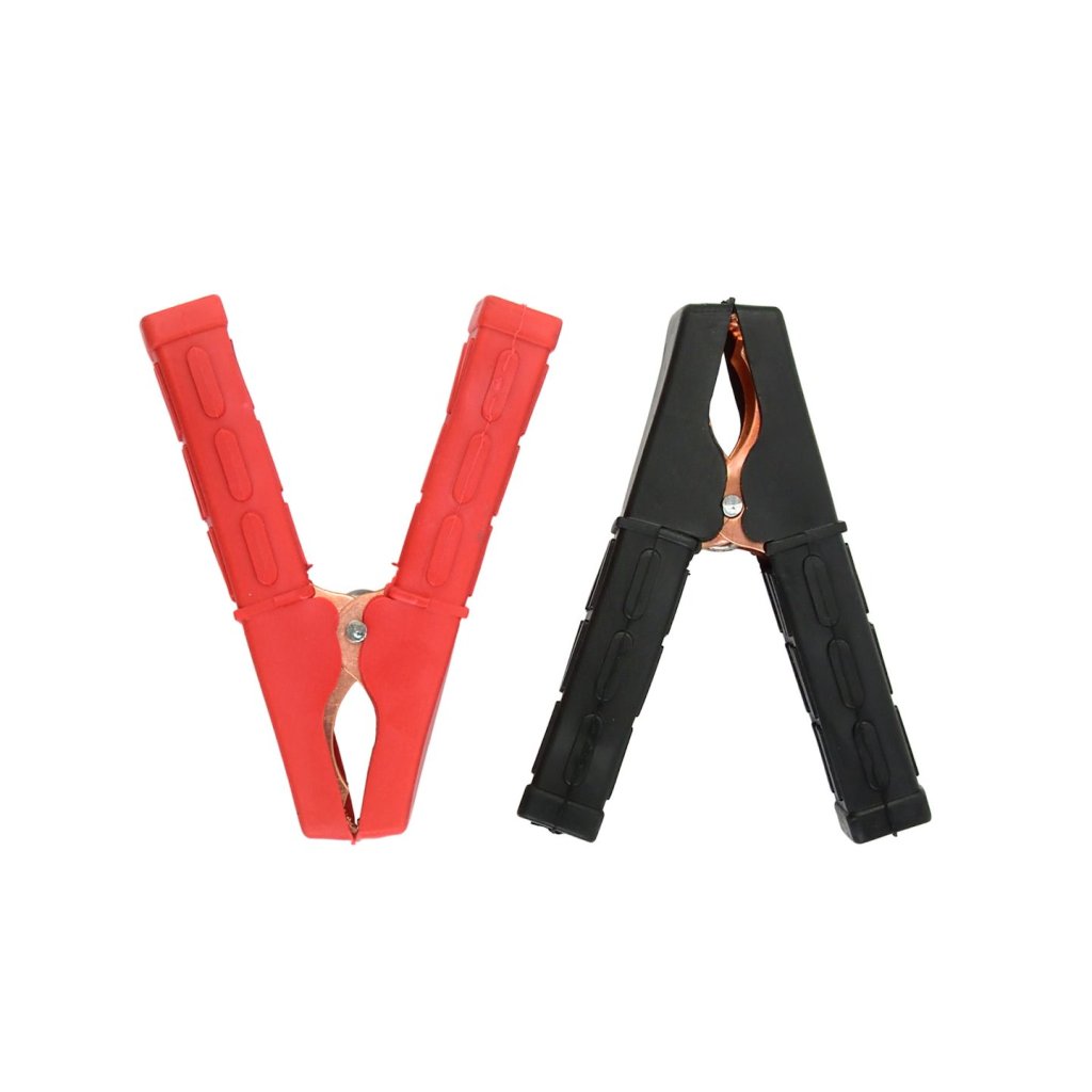 Kleště na akumulátory „krokodýly“, přizpůsobené pro proud o intenzitě nepřesahující 100 A. Určené pro použití v startovacích kabelech, automobilových nabíječkách atd. Silná pružina kleští zaručuje dobré elektrické spojení.
