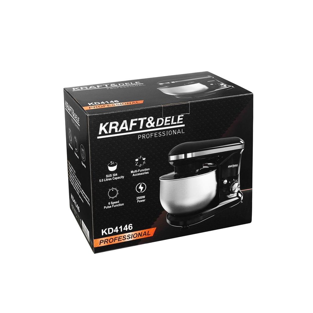 Univerzální Kuchyňský robot pro každodenní pečení i vaření. Model nabízí max. výkon 2500 W, nerezovou mísu o objemu 5 l a regulaci rychlosti pro přesné zpracování surovin – od lehkých krémů po hutná kynutá těsta. Stabilní konstrukce s gumovými nožkami zajišťuje klidný chod. Napájení 220–240 V / 50–60 Hz.