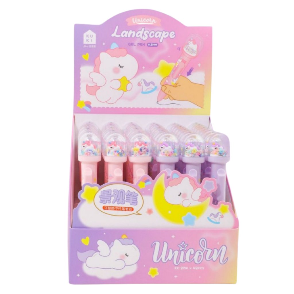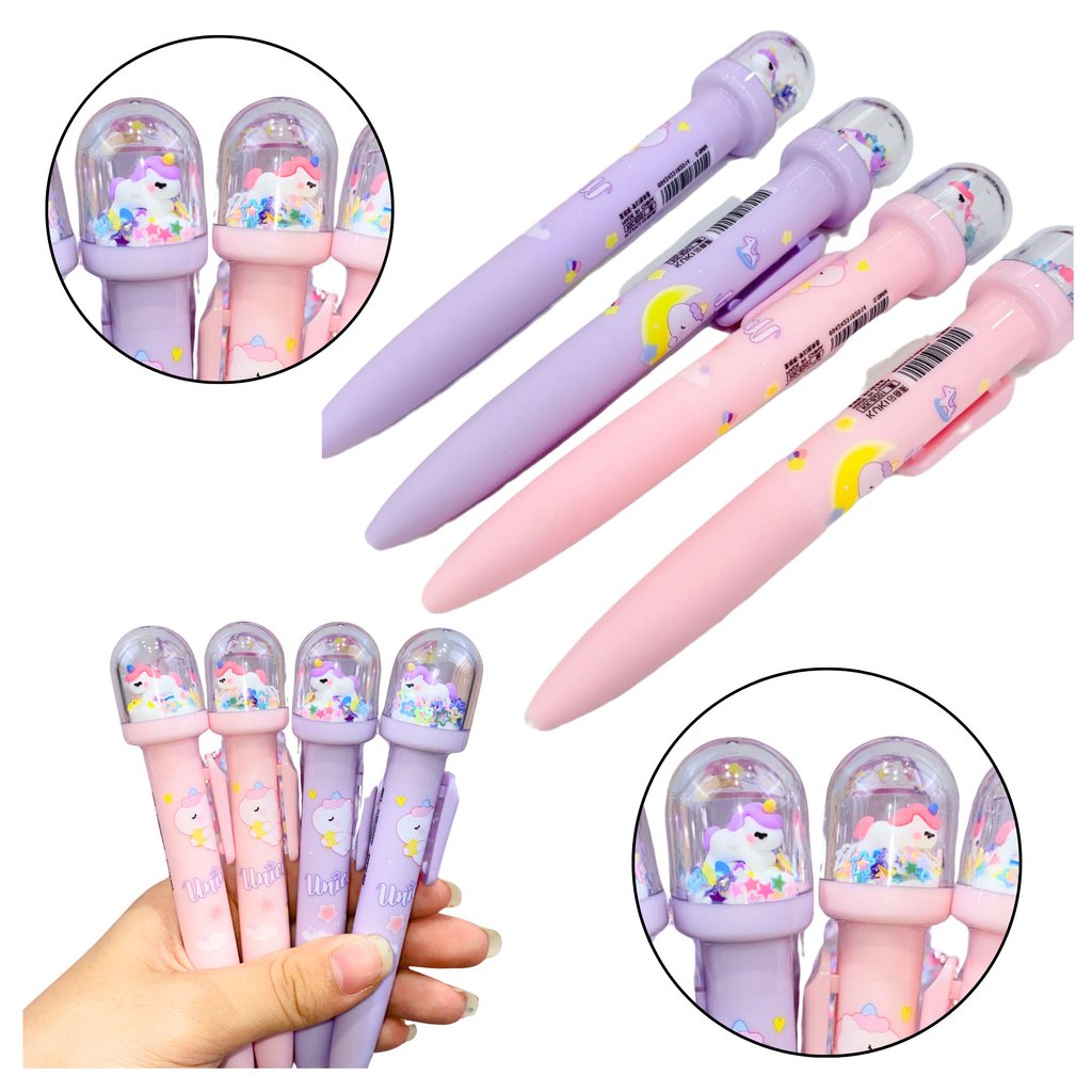 Propiskou s kopulí a třpytkami Jednorožec je okouzlující psací nástroj, který je ideálním doplňkem školní výbavy pro děti a mládež Pastelové barvy, pohádkové motivy a průhledná kupole s pohyblivými prvky přinášejí radost z psaní