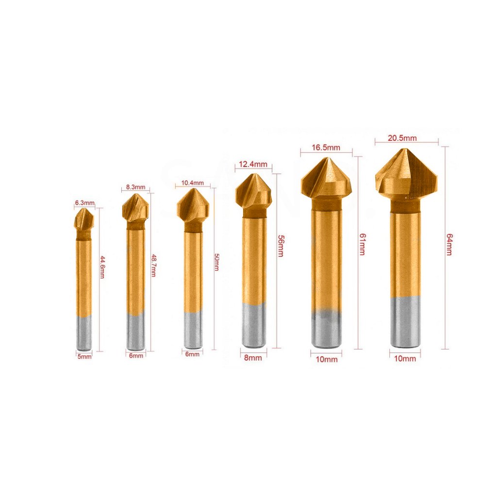 Sada záhlubníku s rozměry (délka x šířka stopky x šířka kužele - v mm):