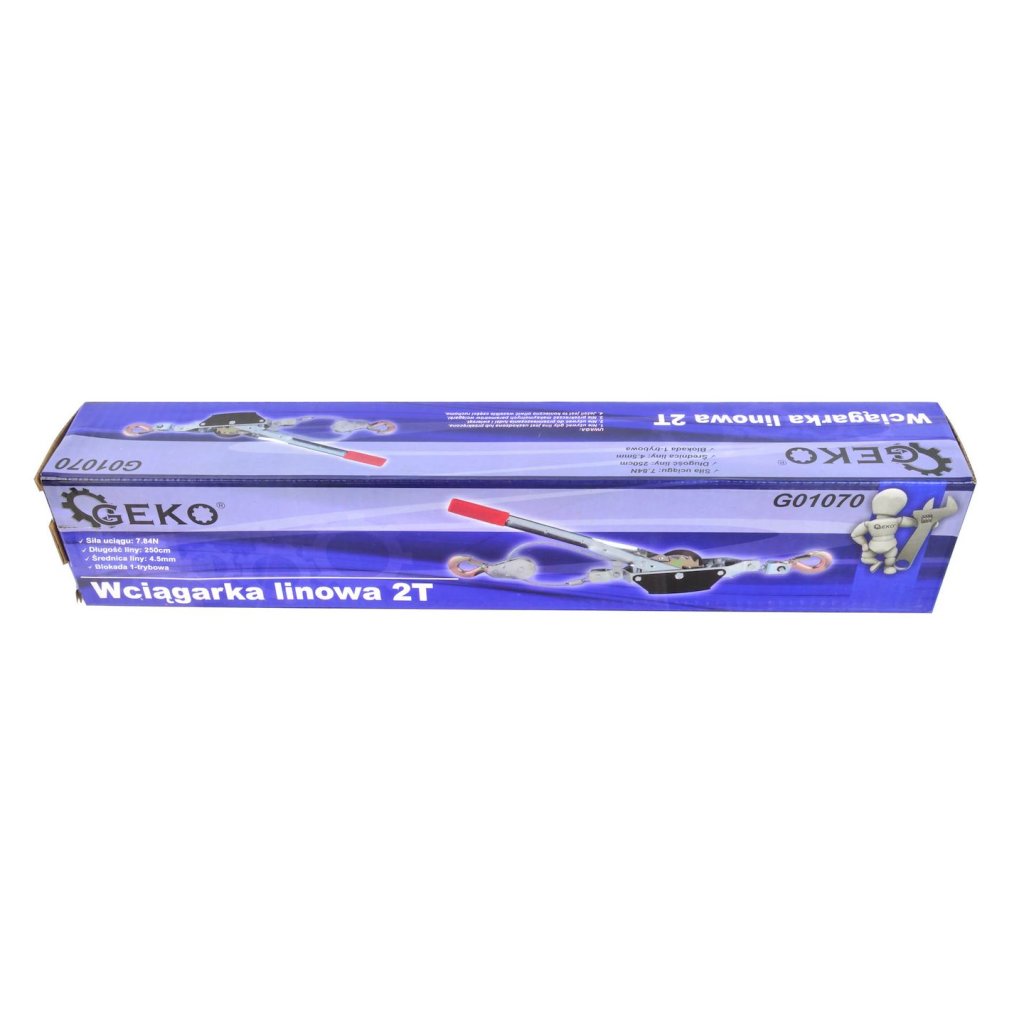 Ruční horizontální lanový naviják. Naviják je vybaven 1-stupňovým blokovacím mechanismem, ocelovým lanem o průměru 4,5 mm a délce 1,8 m, což v kombinaci s odolnými háky generuje tažnou sílu na úrovni 2000 kg.