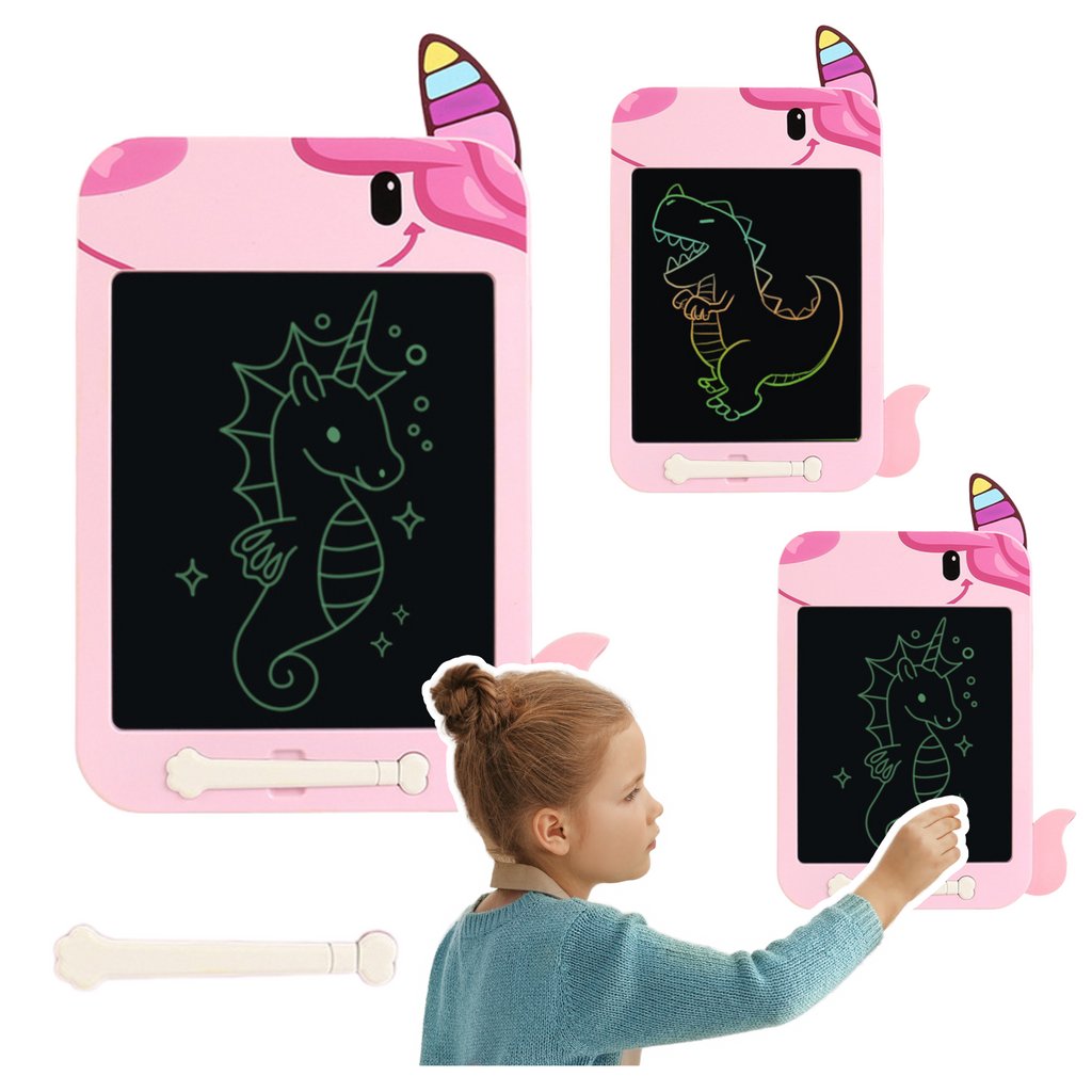 LCD psací a kreslící tabule ve tvaru růžového jednorožce je výjimečná vzdělávací a kreativní hračka, která rozvíjí představivost, manuální dovednosti a soustředění dítěte Díky moderní a citlivé LCD obrazovce může malý umělec pohodlně kreslit, psát a vytvářet barevné náčrty bez potřeby papíru, pastelek nebo fixů