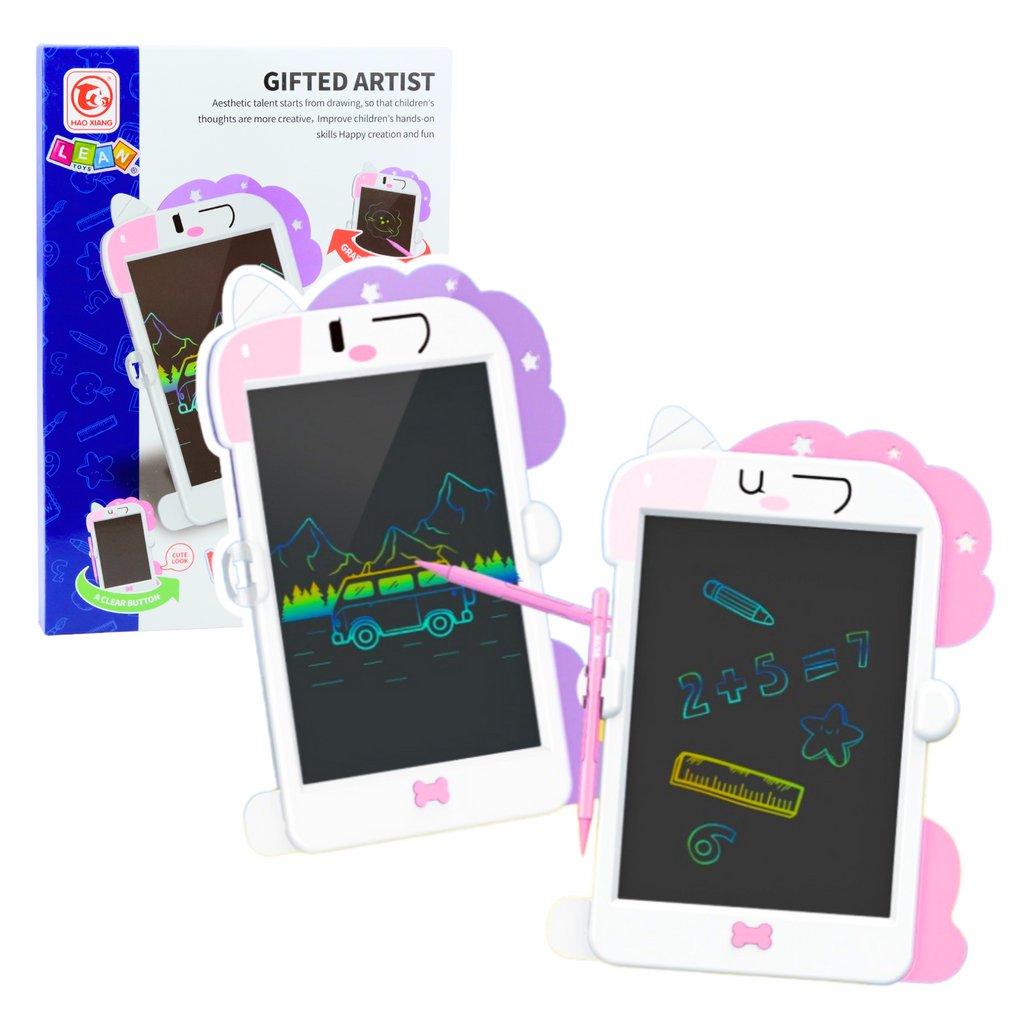Tabule na kreslení ve tvaru jednorožce s perem je ideální vzdělávací hračka pro děti, která skvěle kombinuje kreativní zábavu s prvky výuky Díky moderní LCD obrazovce pro opakovaný zápis může dítě tvořit kresby, psát písmena, počítat a kreslit pestrobarevné obrázky