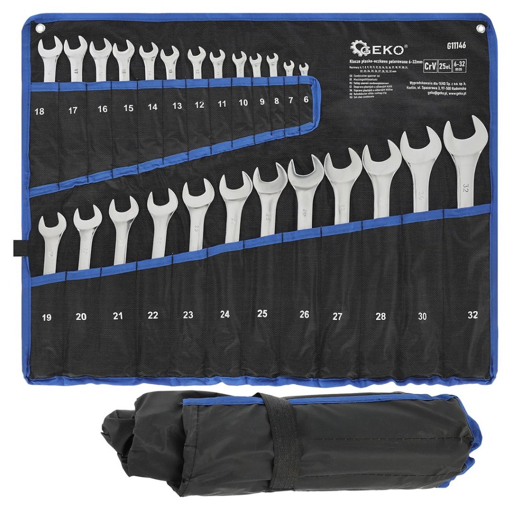 Leštěné klíče s plochým a okem 6-32 mm, 25 ks (1/4)