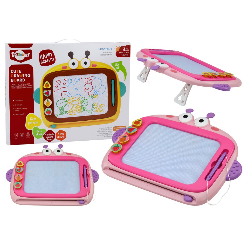 Magnetická Tabule na Malování 4 Barvy Zmizík 4 Razítka Růžová