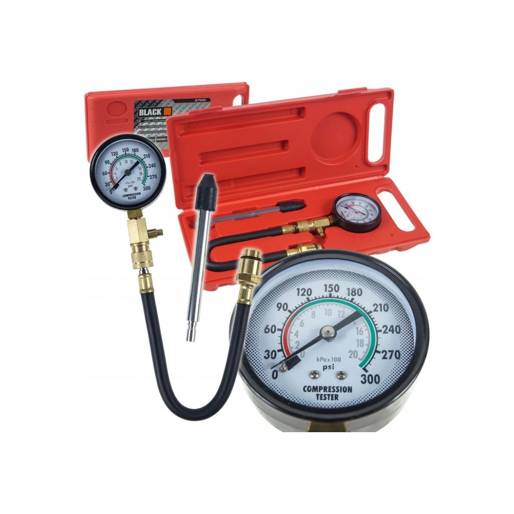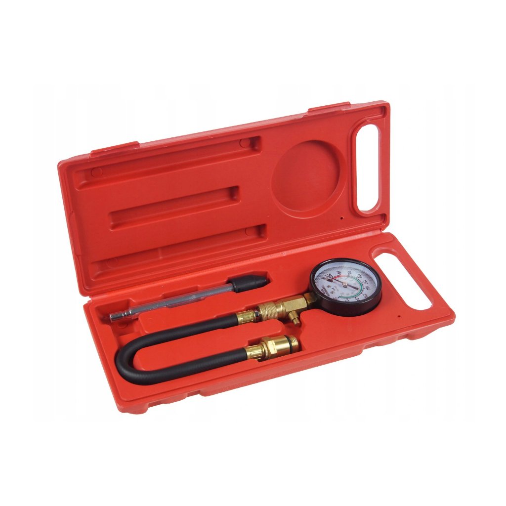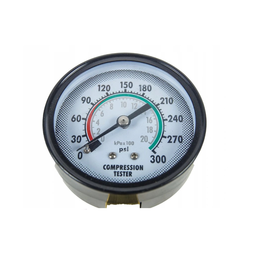 Je vybaven analogovým tlakoměrem se stupnicí 3 - 20 barů (50-300 PSI), který je umístěn v těle adaptéru. Manometr vybavený špičkou našroubovanou do objímky zapalovací svíčky (M 14 a M 18).