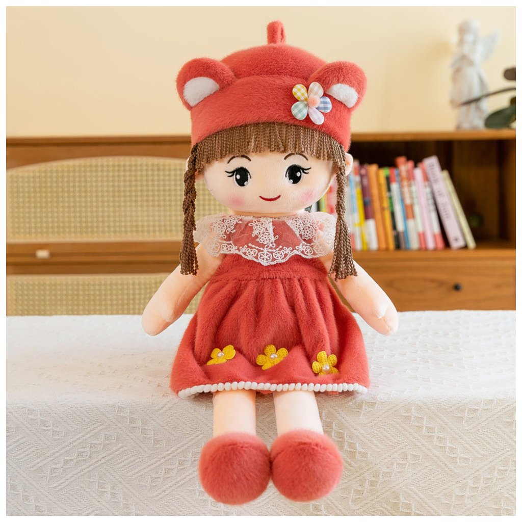Objevte kouzlo naší měkké textilní panenky v elegantních červených šatech, která svým půvabem a detailním provedením nadchne každou malou princeznu. Tato panenka se stane oblíbenou plyšovou kamarádkou díky svému roztomilému obličeji, hnědým copánkům a harmonickému doplnění červeným čepičkou a botičkami.
