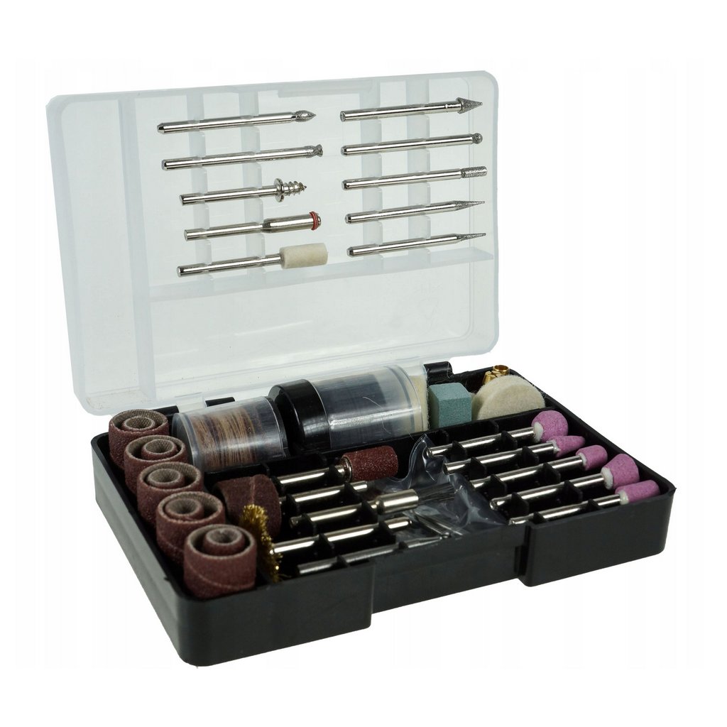 ✅ Široká sada 126 kusů příslušenství – Obsahuje brousicí kameny, brusné kotouče, řezné kotouče, frézy, lešticí nástroje a další příslušenství.