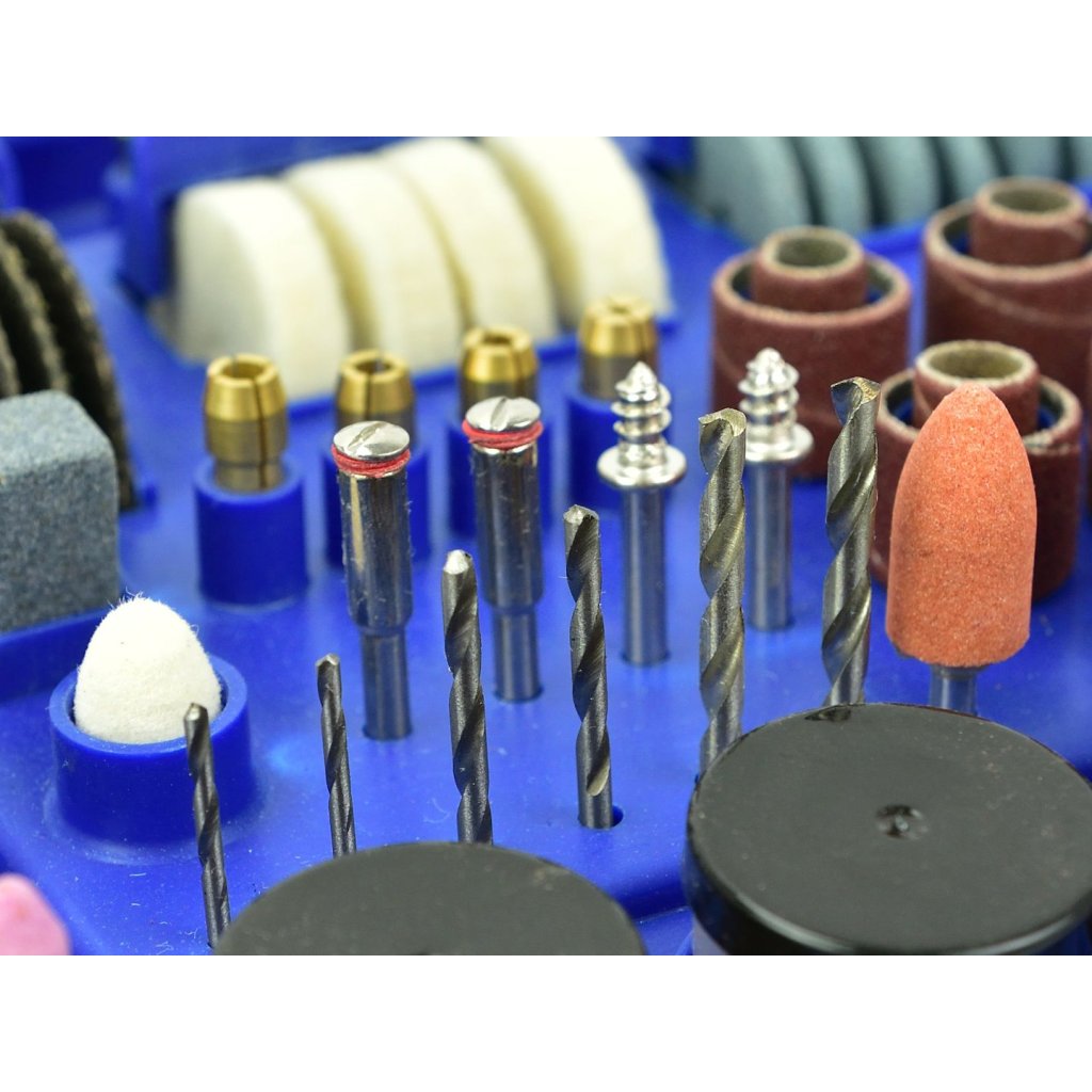 - kompletní sada příslušenství pro čištění, leštění, broušení, vrtání, vyřezávání a řezání